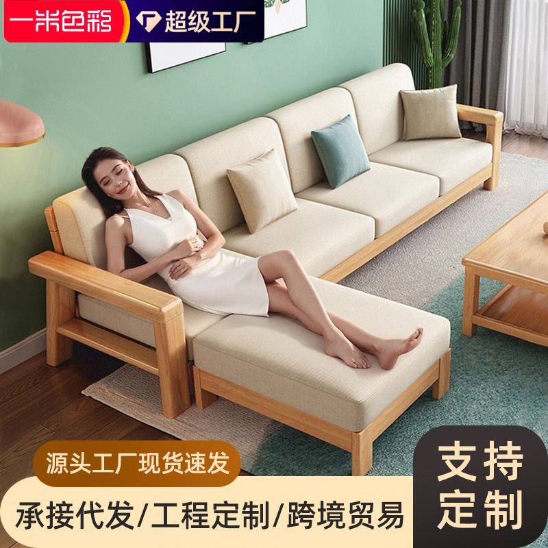 北欧無垢材ソファリビングルーム家具組み合わせモダンシンプルコーナーロングソファ大小サイズ冬と夏のデュアルユースソファ