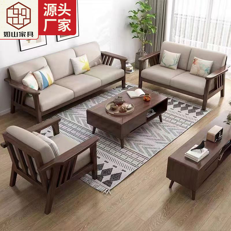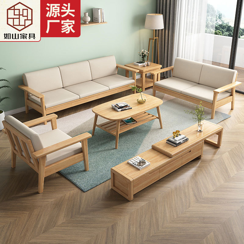 原木風実木ソファーセット北欧客間シンプル現代小戸型冬夏両用民宿日本式ソファー