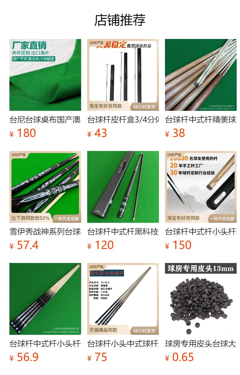 台球杆中式杆10.3mm小头杆斯诺克九球杆黑八台球公杆会员杆