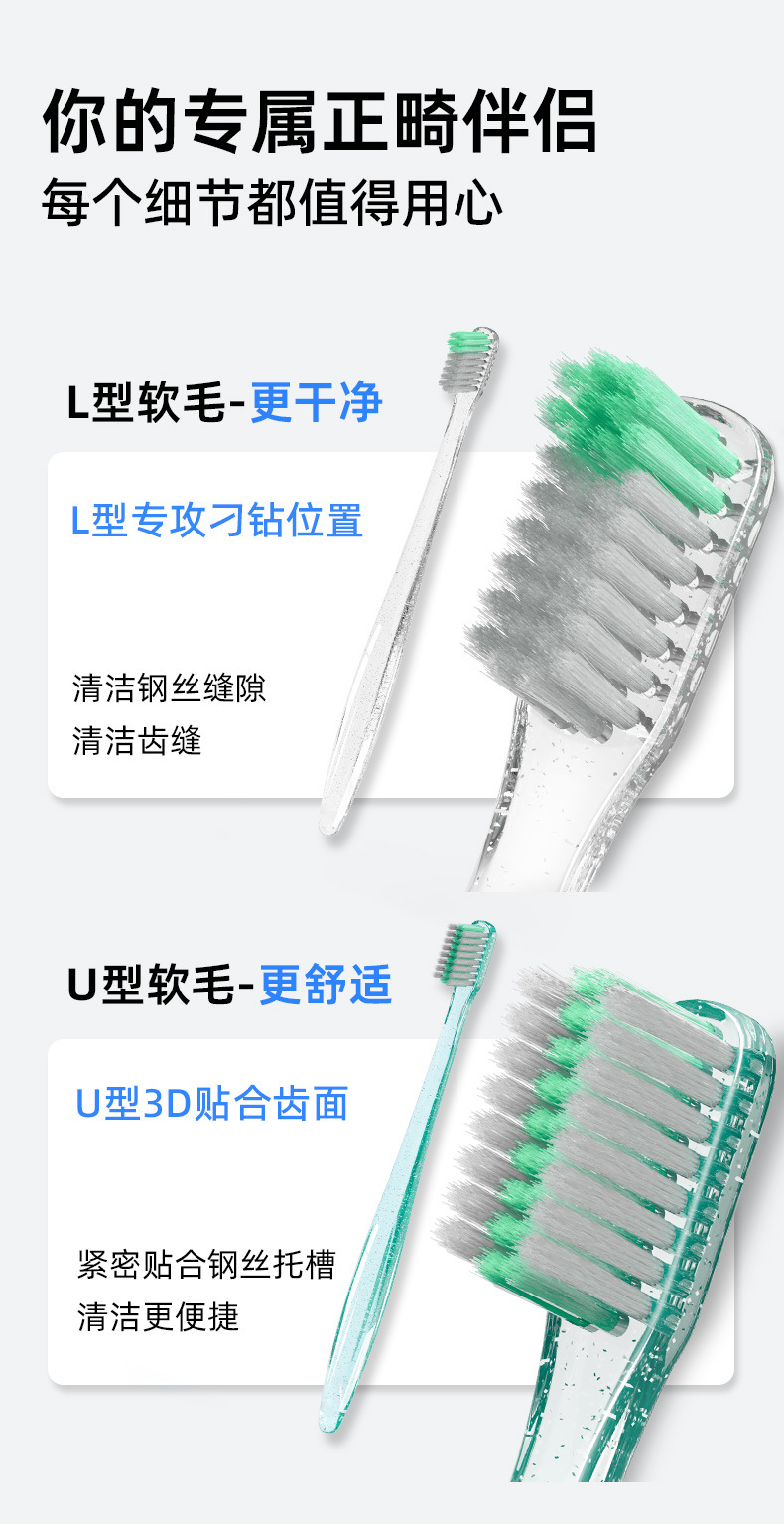 鹿さんの母親の歯列矯正中用歯ブラシ、歯の矯正用、柔らかい毛、小さなヘッド、矯正器具、歯間ブラシ