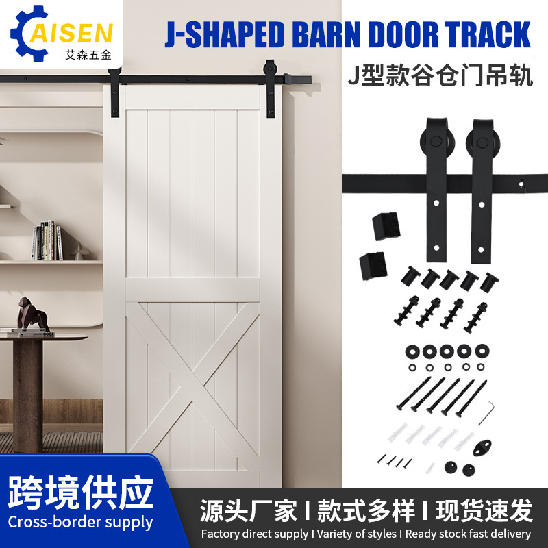 アメリカ式納屋戸吊りレールJ型クラシックトラック一式引き戸スライドレール移動式ドア滑車付属品工場直営