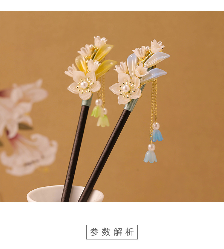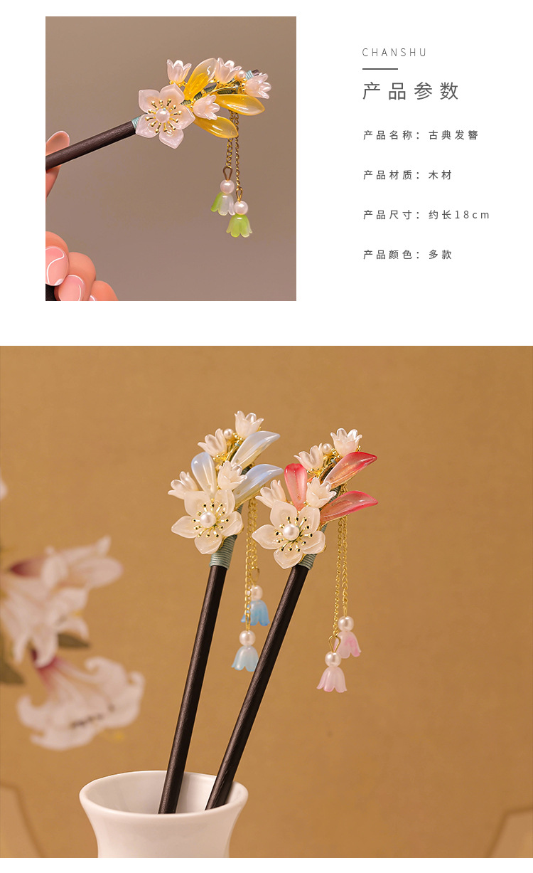 新しい中国風のスズランの花のタッセル付きヘアピン、古代スタイルのチャイナドレスと漢服のヘアピン、木製ヘアピン、エレガントなヘアピン、女性用ヘアアクセサリー