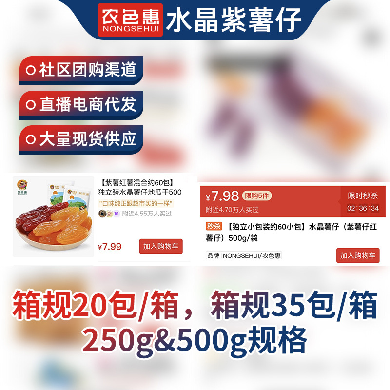 Nongsehui クリスタル紫芋 500g 干し芋、乾燥芋、卸売乾燥芋、ドライサツマイモの卸売