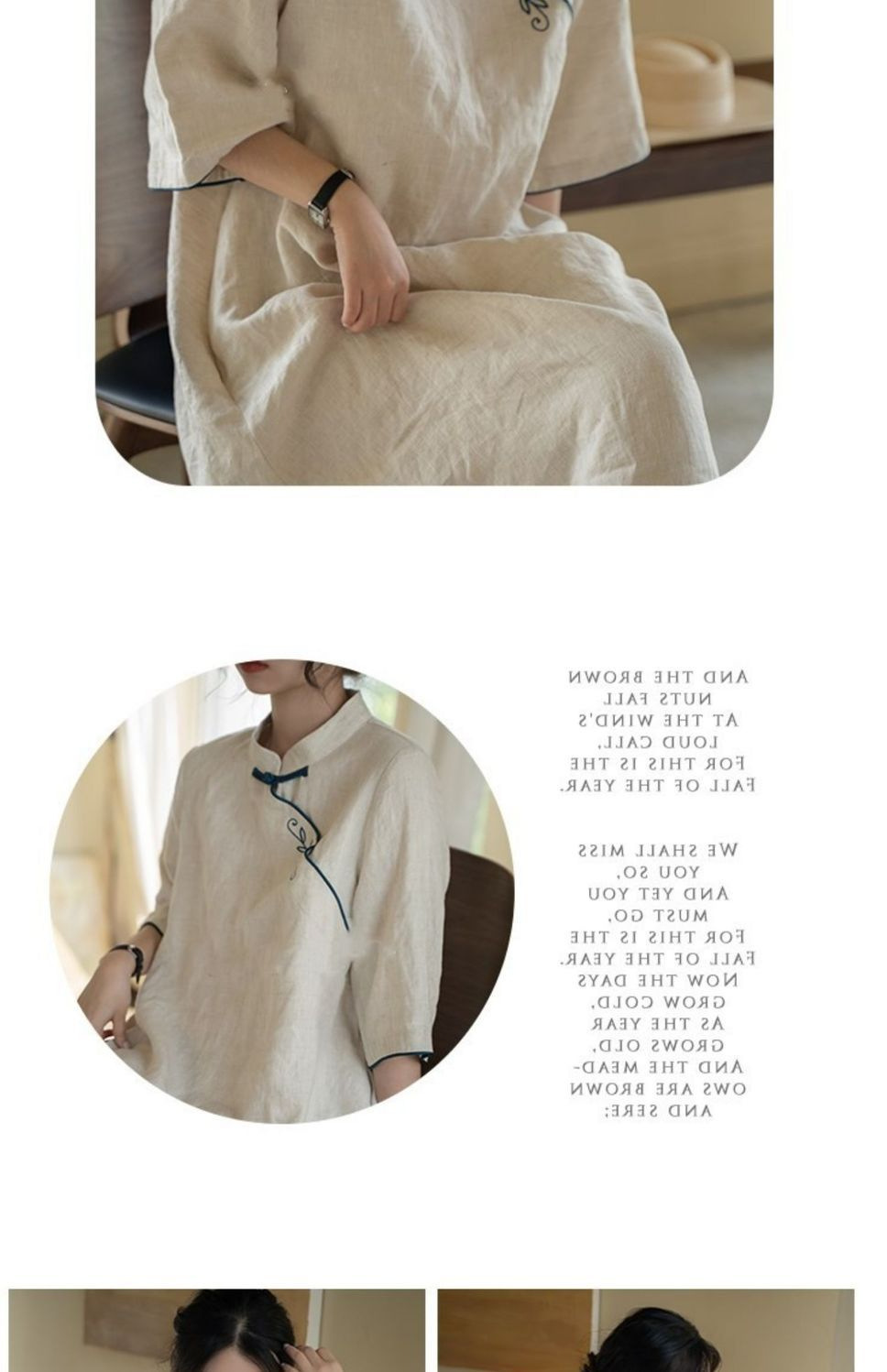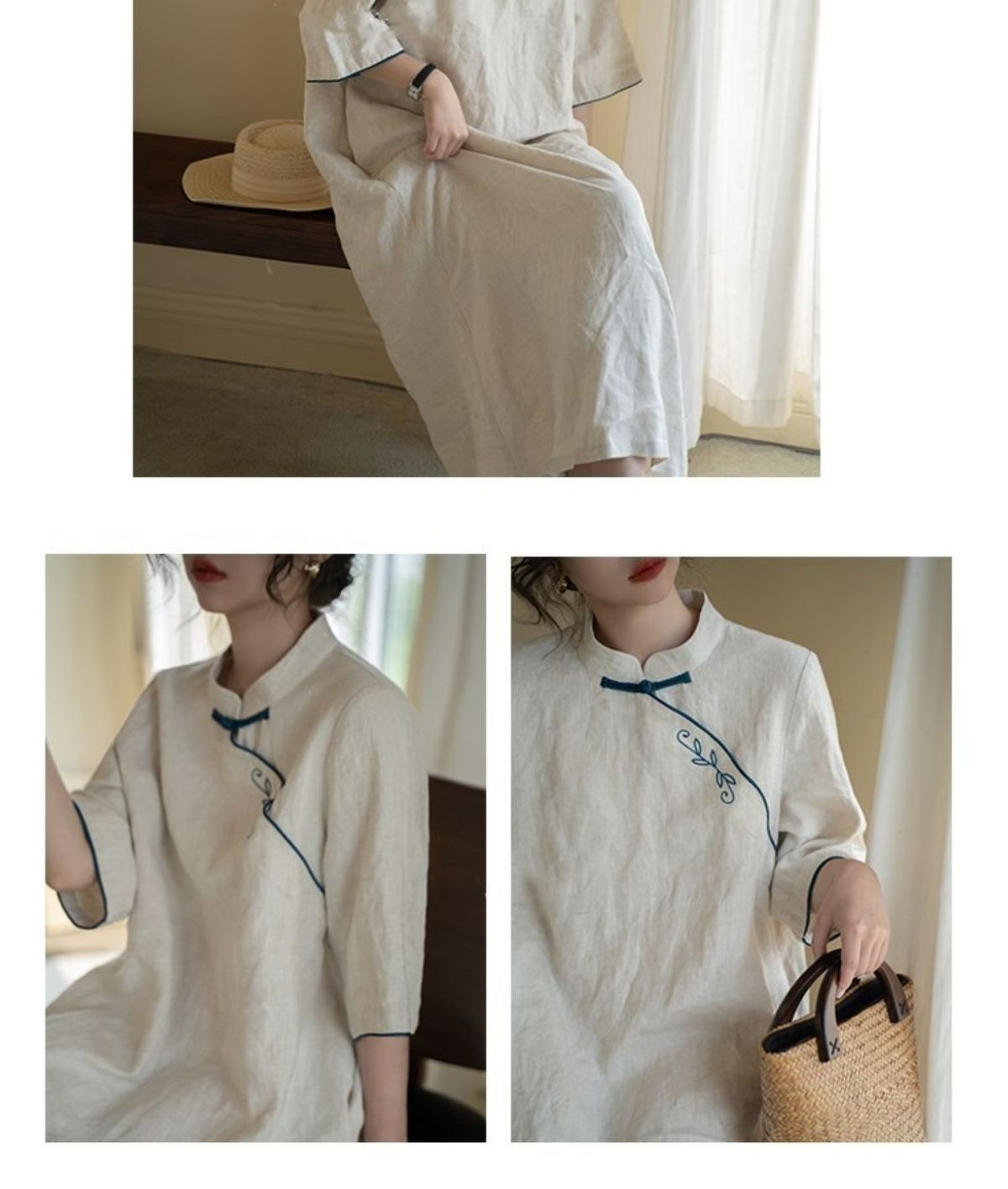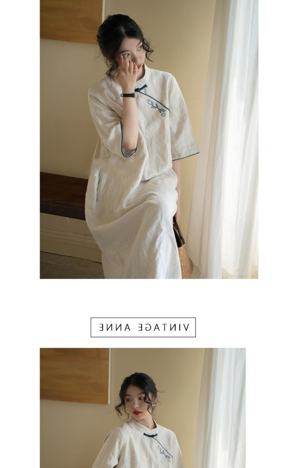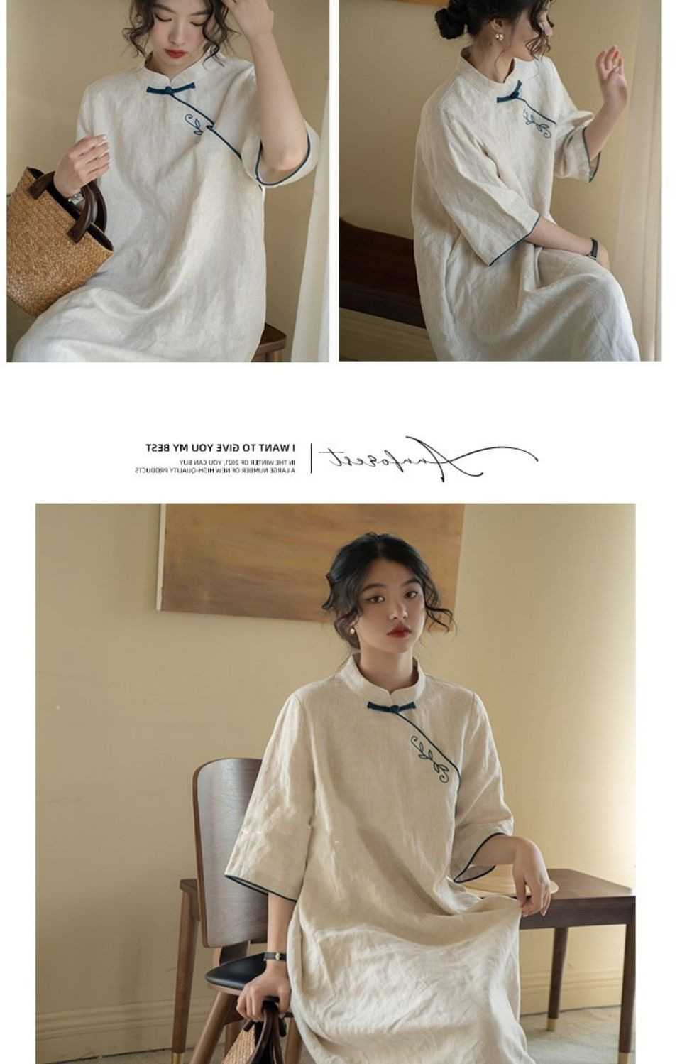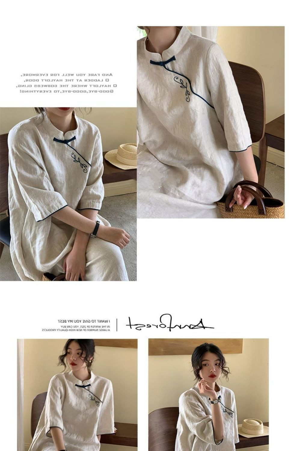 2025 春夏コットンとリネンのルーズレトロ刺繍新中国風改良チャイナドレス小さなスタンドカラー刺繍スカート