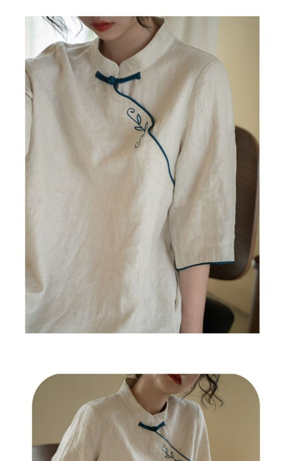 2025新款民族风宽松立领盘扣棉麻女装上衣T恤女重工刺绣连衣裙夏