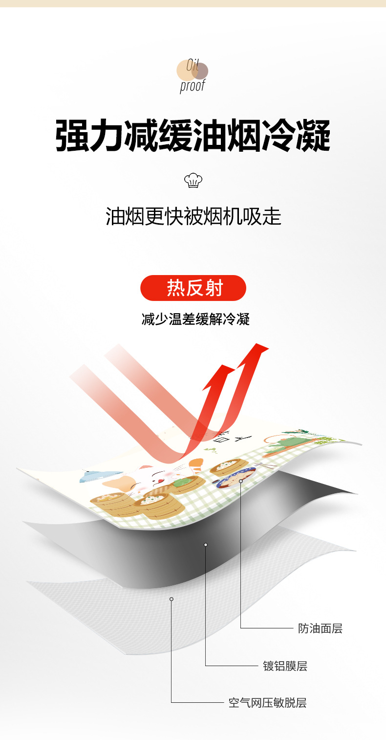 ♔ キッチン耐油ステッカー、難燃性、耐火性、耐高温性、粘着式レンジフード壁紙、防水防湿漫画ステッカー