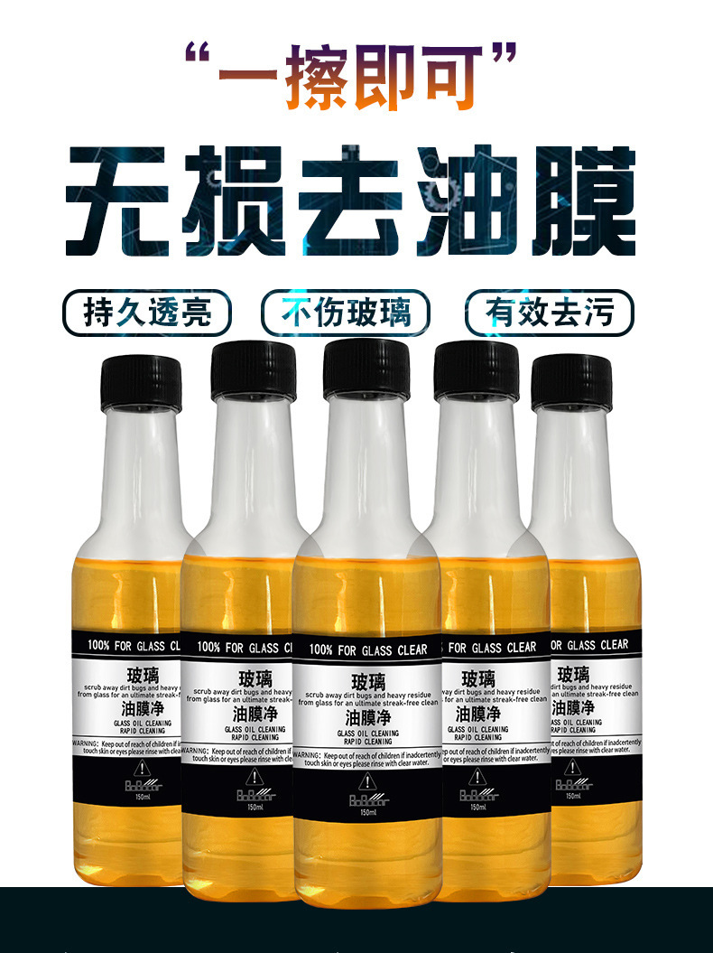 ガラス油膜除去剤自動車ガラス水添加剤強力油汚れ除去洗浄剤防雨防曇油膜洗浄