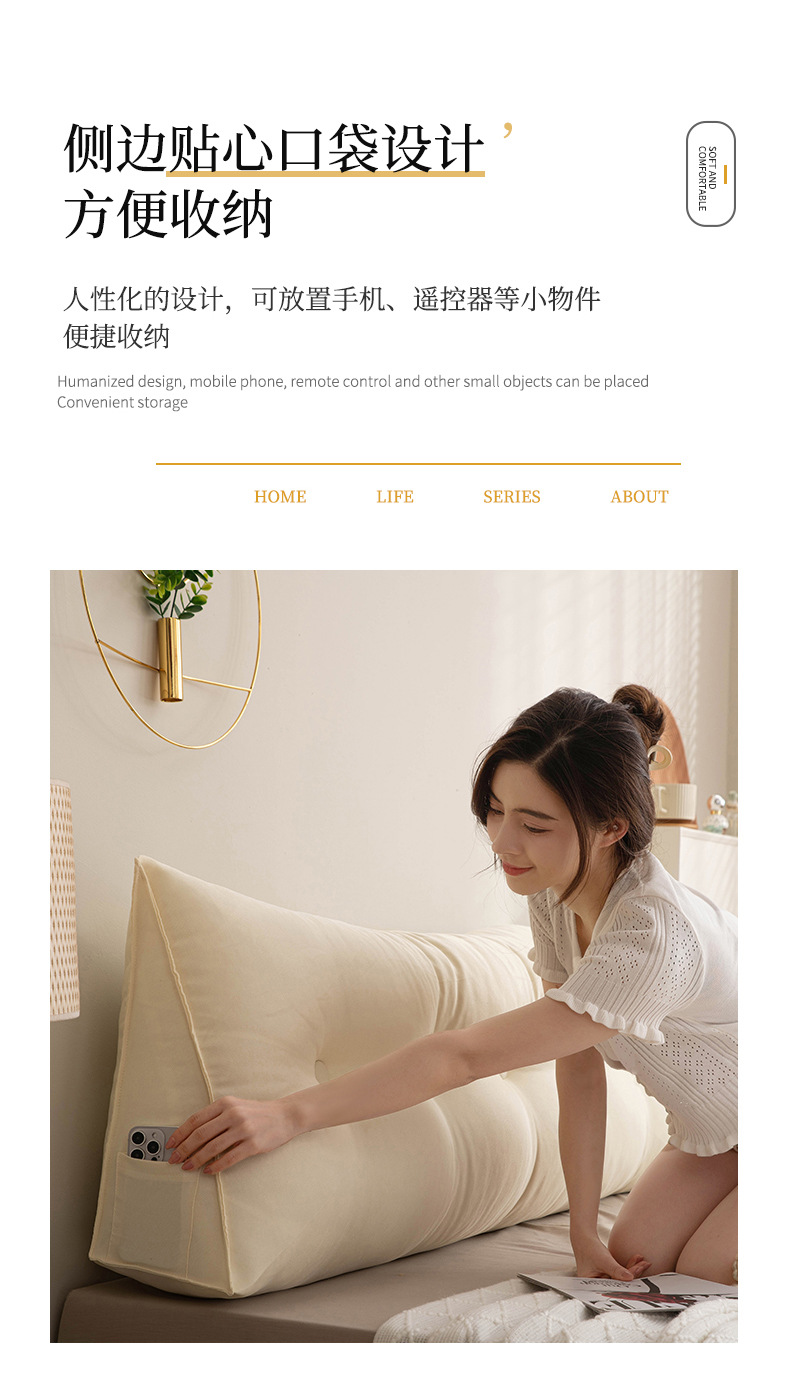 クロスボーダーベッドサイド三角クッションベッドクッション大型背もたれ腰クッション背もたれ畳ソフトバッグ寮寝室取り外し可能
