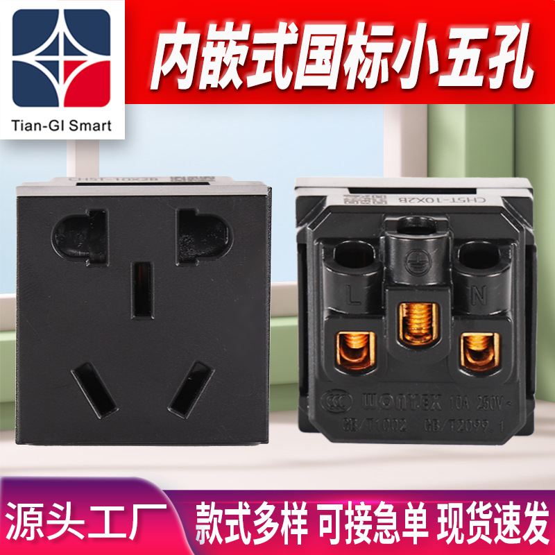 カードインサート10AソケットGB国標小五穴配電盤工業小デスクトップac電源コンセント黒