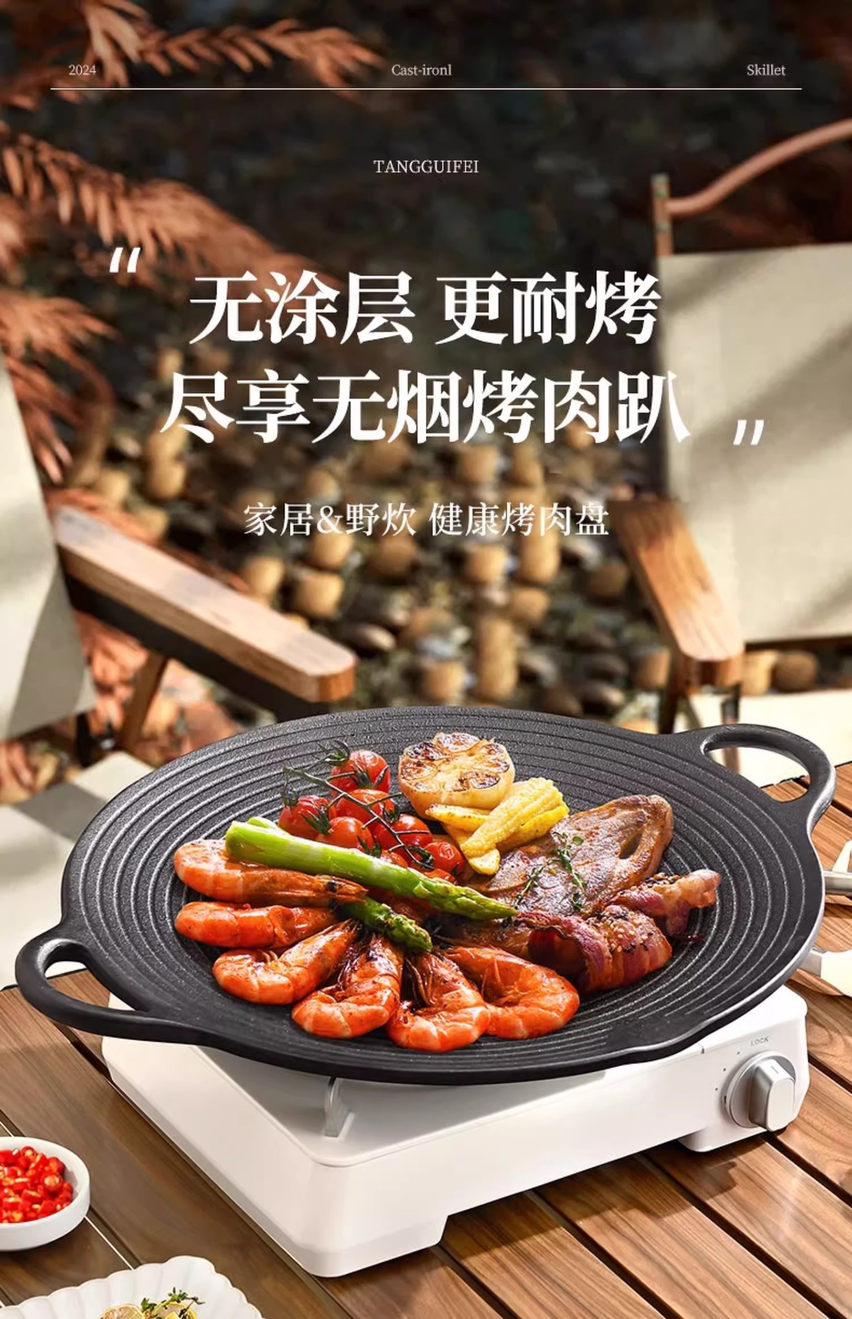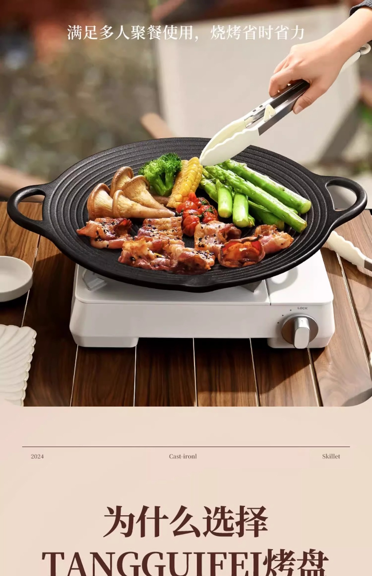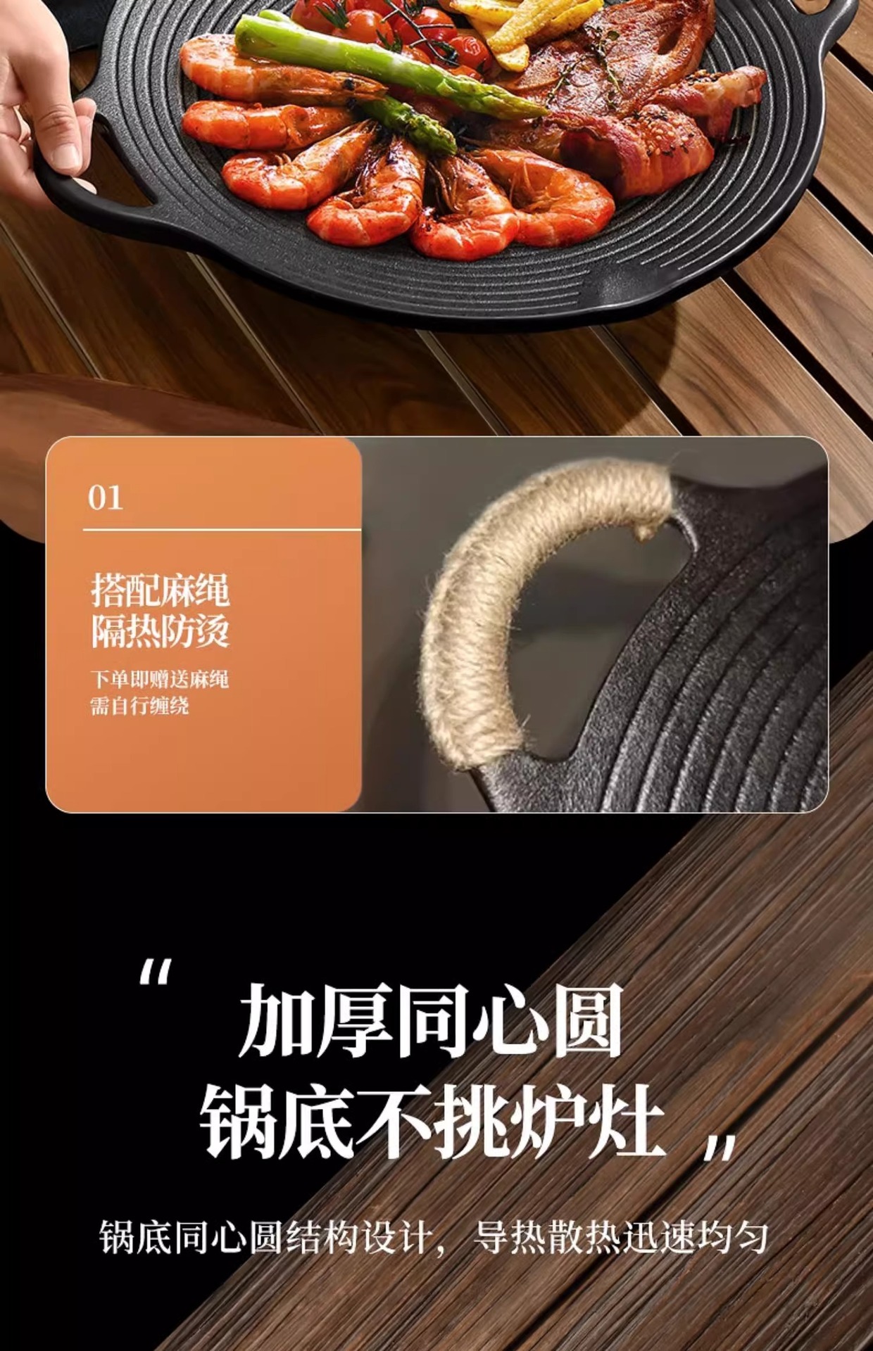 鋳鉄バーベキュープレート屋外スレッドグリルプレートカセット炉電磁調理器ノンスティック韓国バーベキューポットフライドステーキ鉄板家庭用