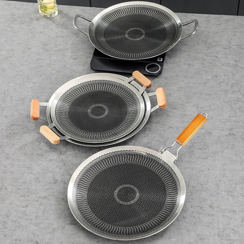 304屋外キャンプ焼き皿ステンレス焼肉皿屋外携帯用煙が少ない物理的に両面カード炉にくっつかない