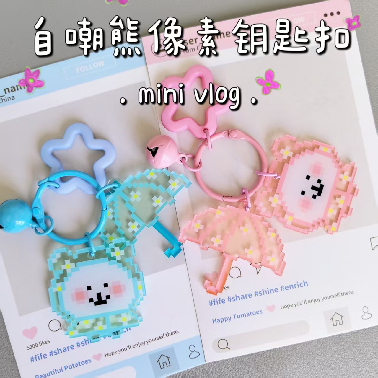 卡通像素自嘲熊雨伞挂件亚克力可爱钥匙扣学生包包书包礼物挂饰