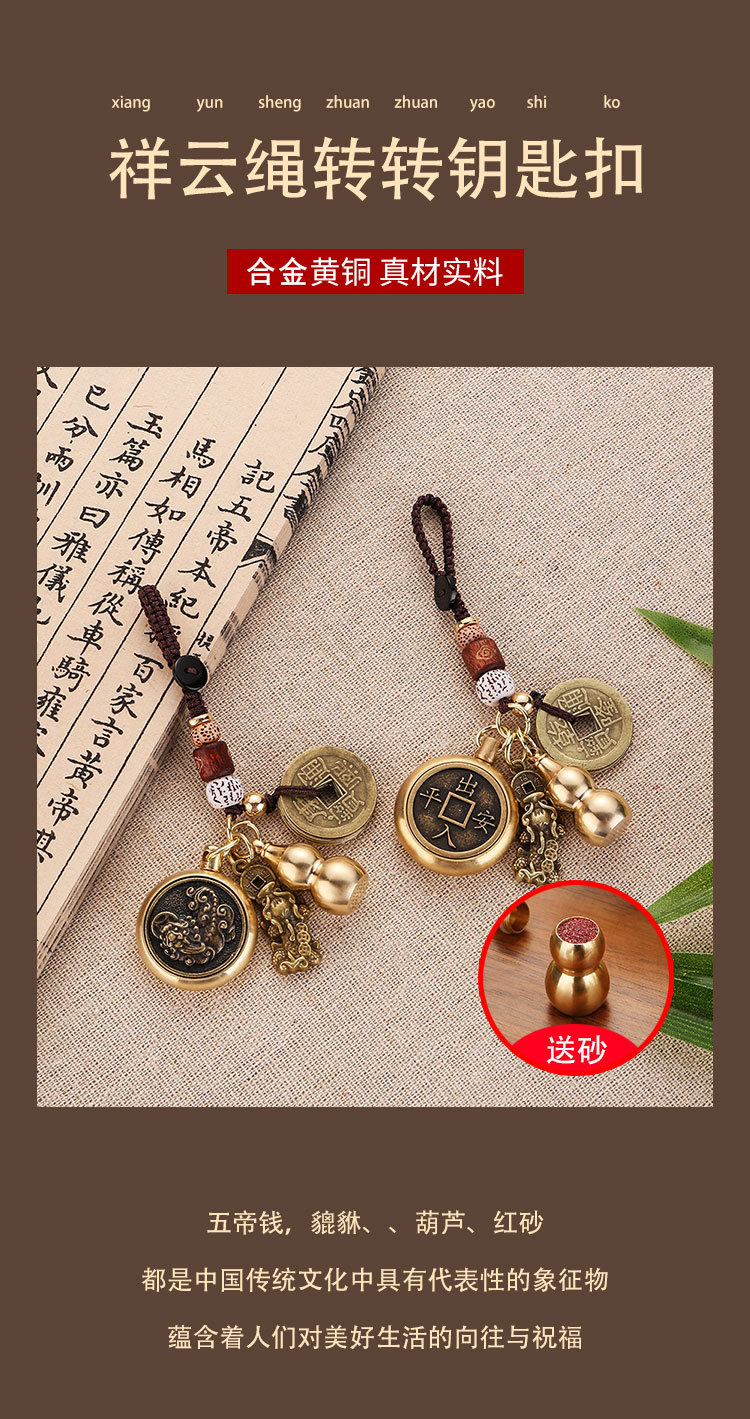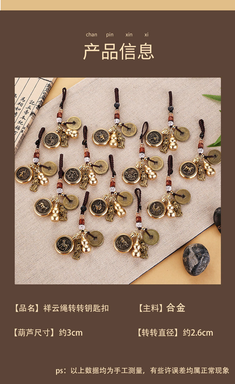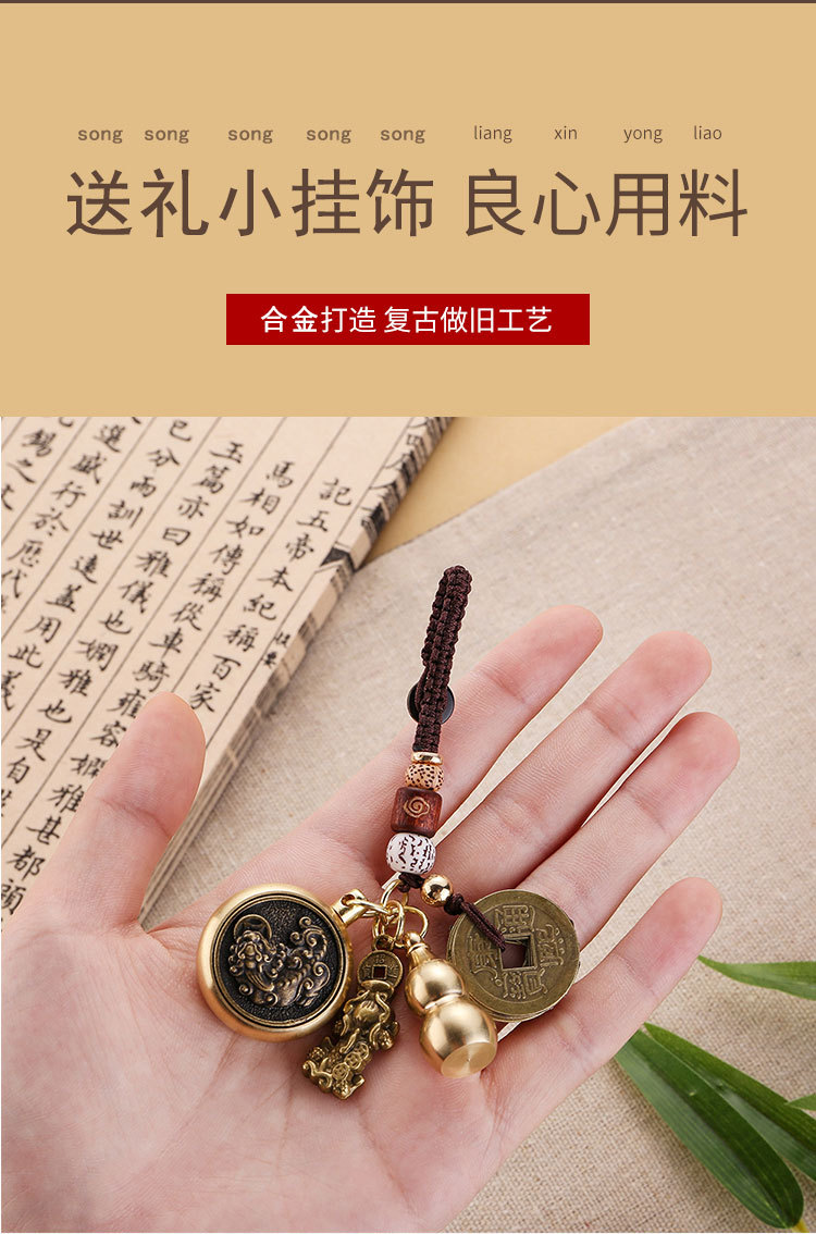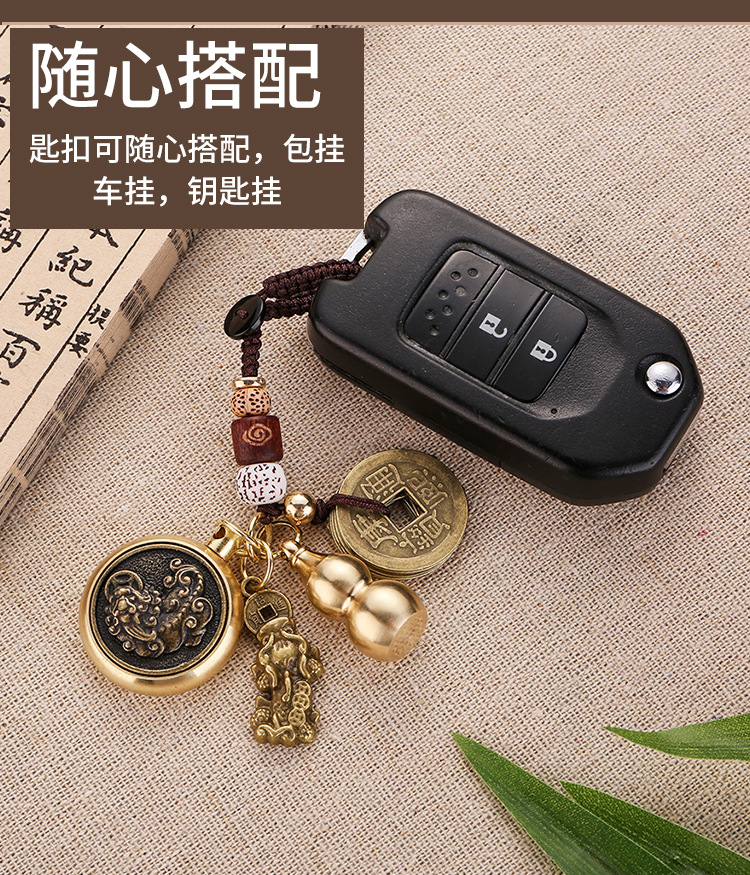 【工場卸売】真鍮十二支回転式キーホルダー 五帝銭 葫芦銭 銀貔貅ペンダント