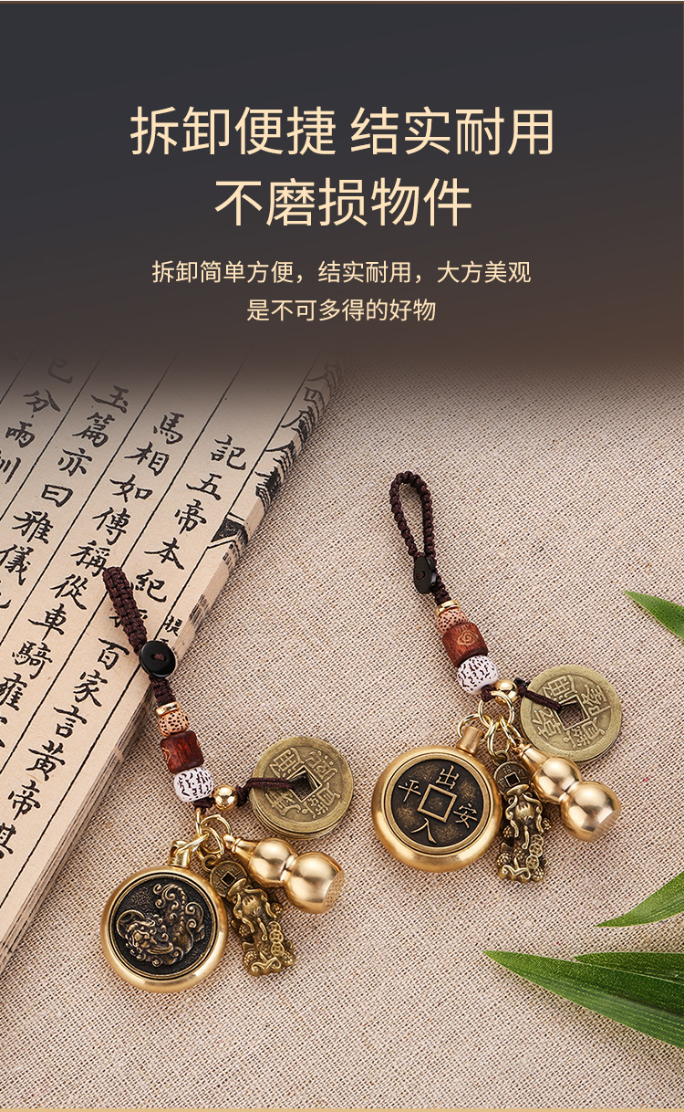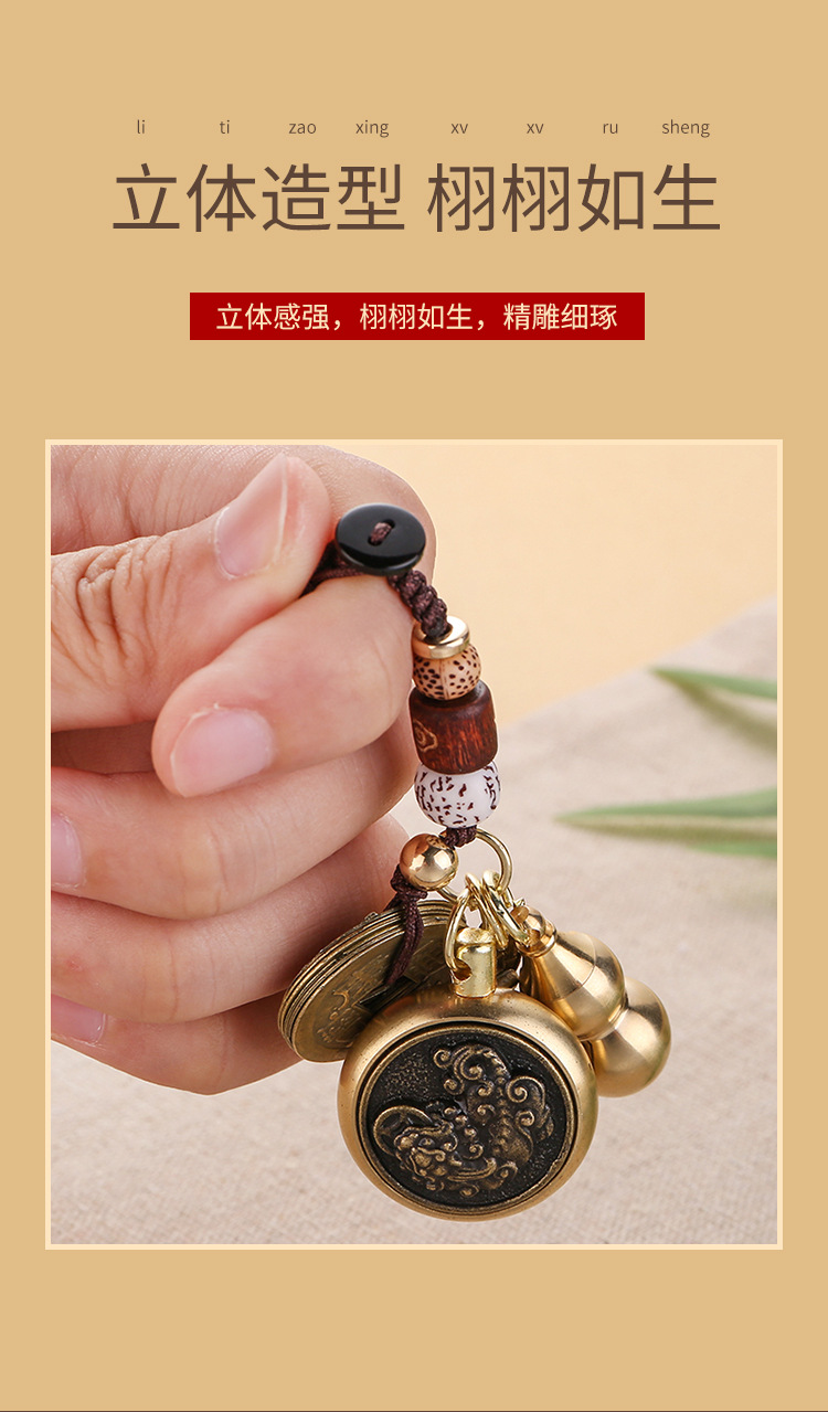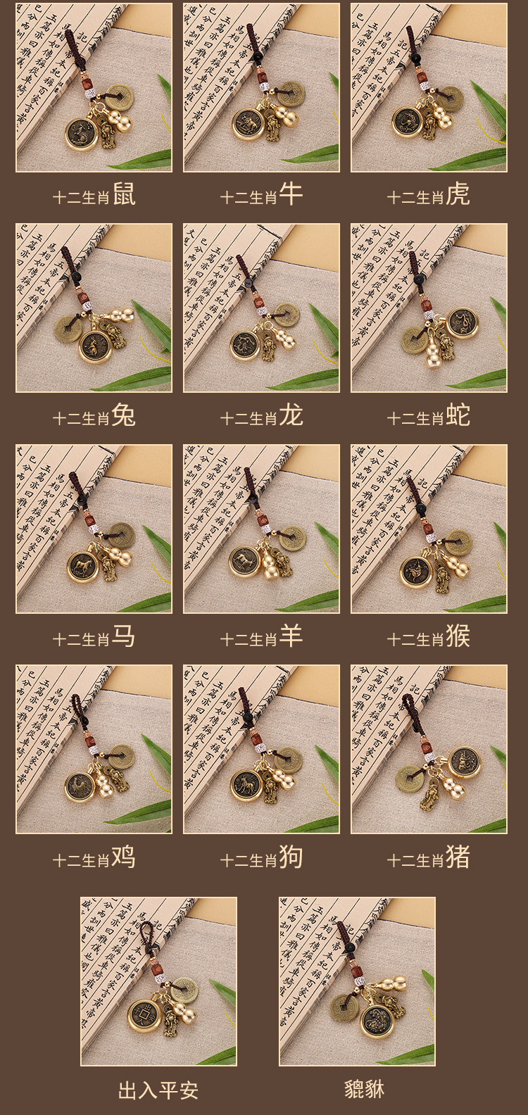 【工場卸売】真鍮十二支回転式キーホルダー 五帝銭 葫芦銭 銀貔貅ペンダント