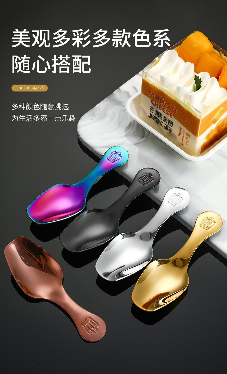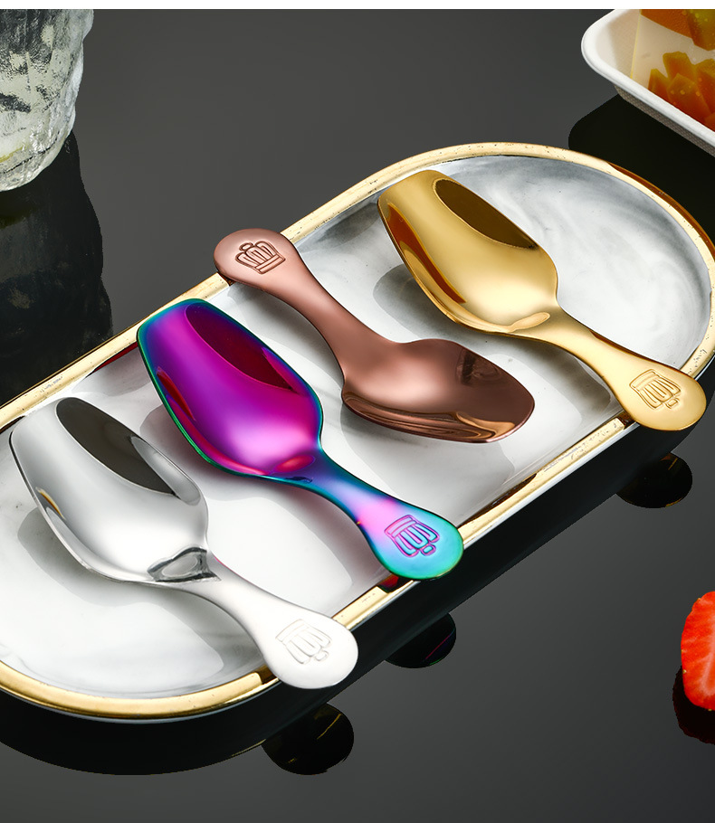 元メーカー304ステンレス短柄茶匙調羹現物クラウン茶葉匙アイスクリームスプーン