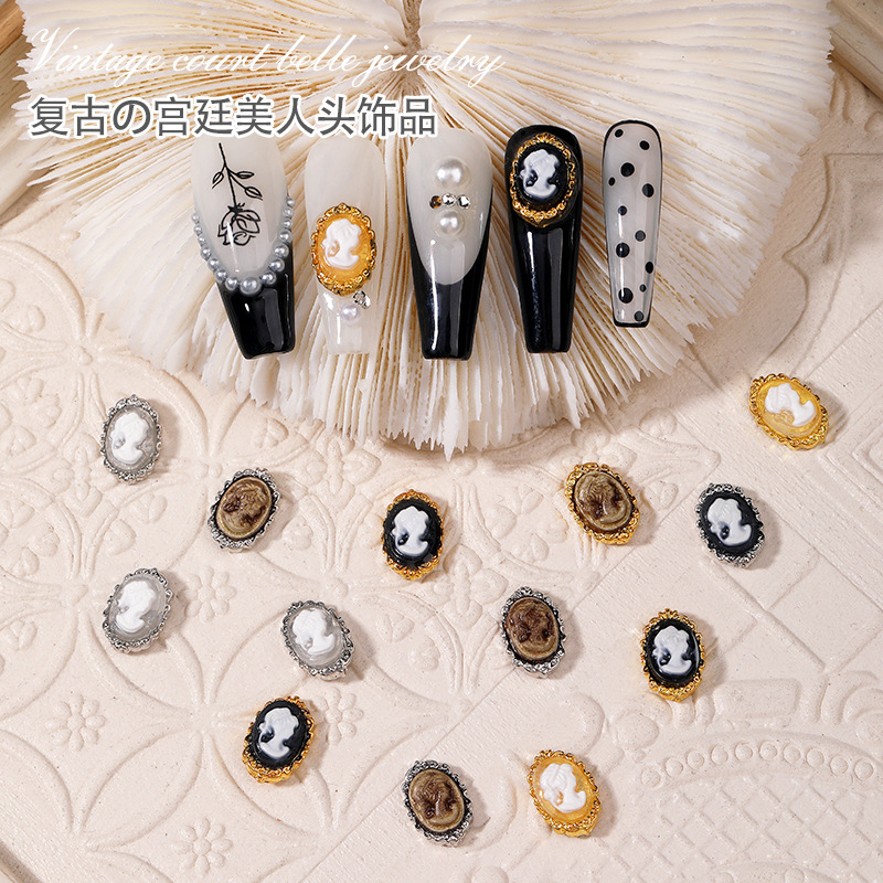 新しいレトロな宮廷の美人の頭のネイルアクセサリーの合金の縁のinsの同じタイプのバロック風の爪の装飾品は貼ります。