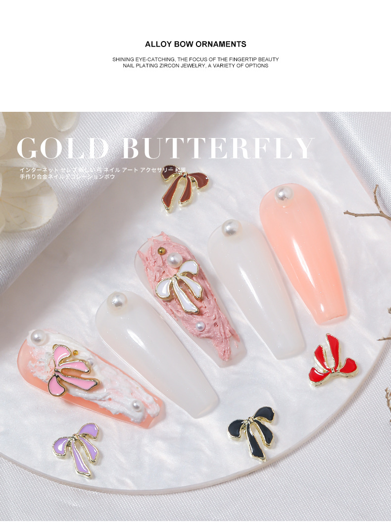 国境を越えて人気のある蝶ネイルアクセサリーの透かし彫り合金に翼を入れた五角星爪装飾部品卸売り