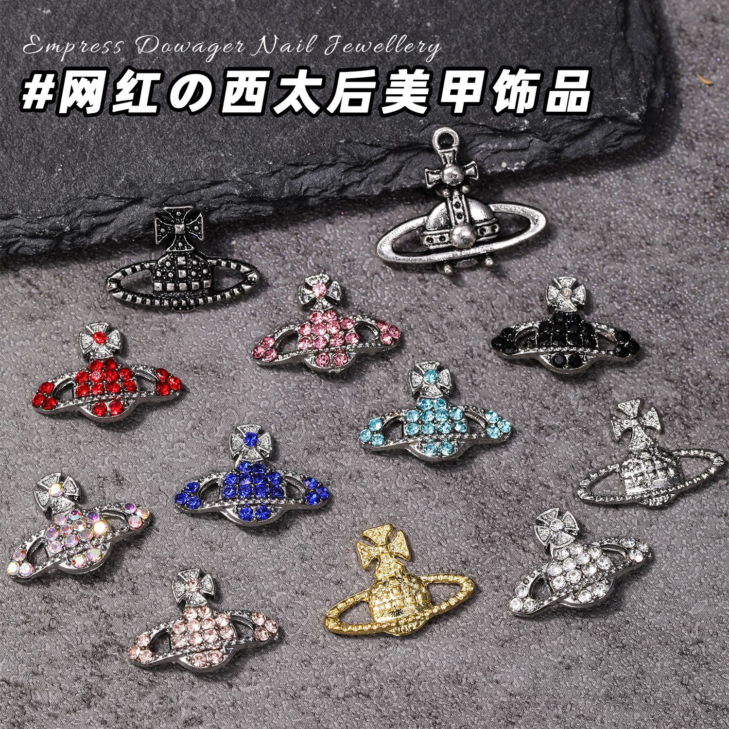 新型の西太后のネイルアクセサリーのレトロな暗黒風のクロスは軽くて豪華なダイヤモンドの星の土星の爪の装飾を入れます。