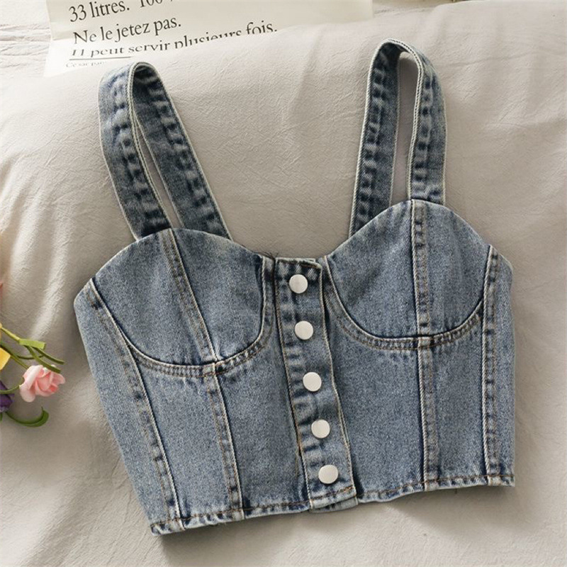 女の子の夏の新型カウボーイ単列ボタンの短いキャミソール