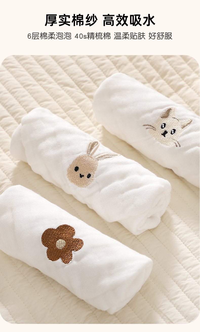 柔蕴洗脸巾毛巾婴儿纯棉六层纱布巾新生儿宝宝洗澡毛巾儿童洗脸巾