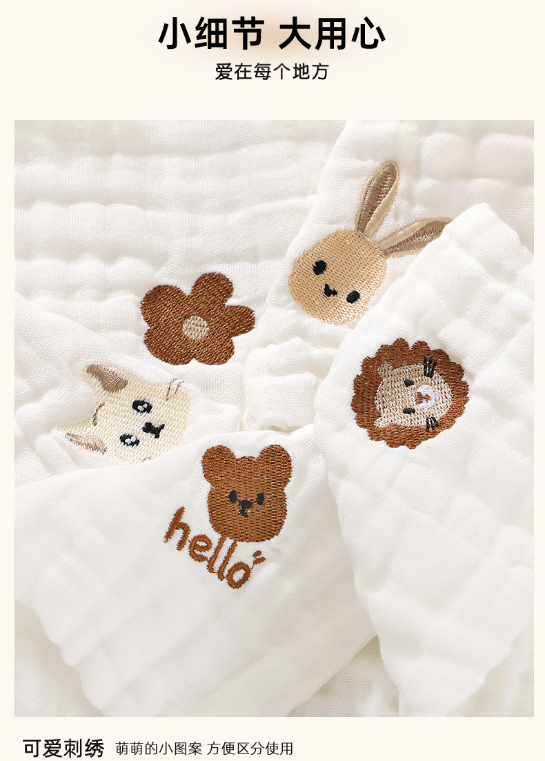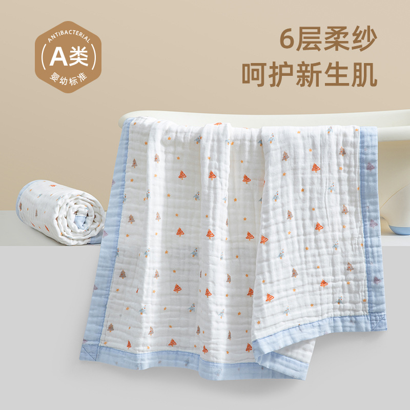 ベビータオル夏の薄いタイプの高颜値1、2歳の新しい赤ちゃん綿a類6層ガーゼタオル