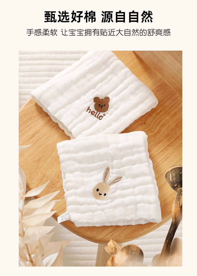 柔蕴婴儿纯棉纱布口水巾新生宝宝洗脸巾多功能小方巾超软手帕