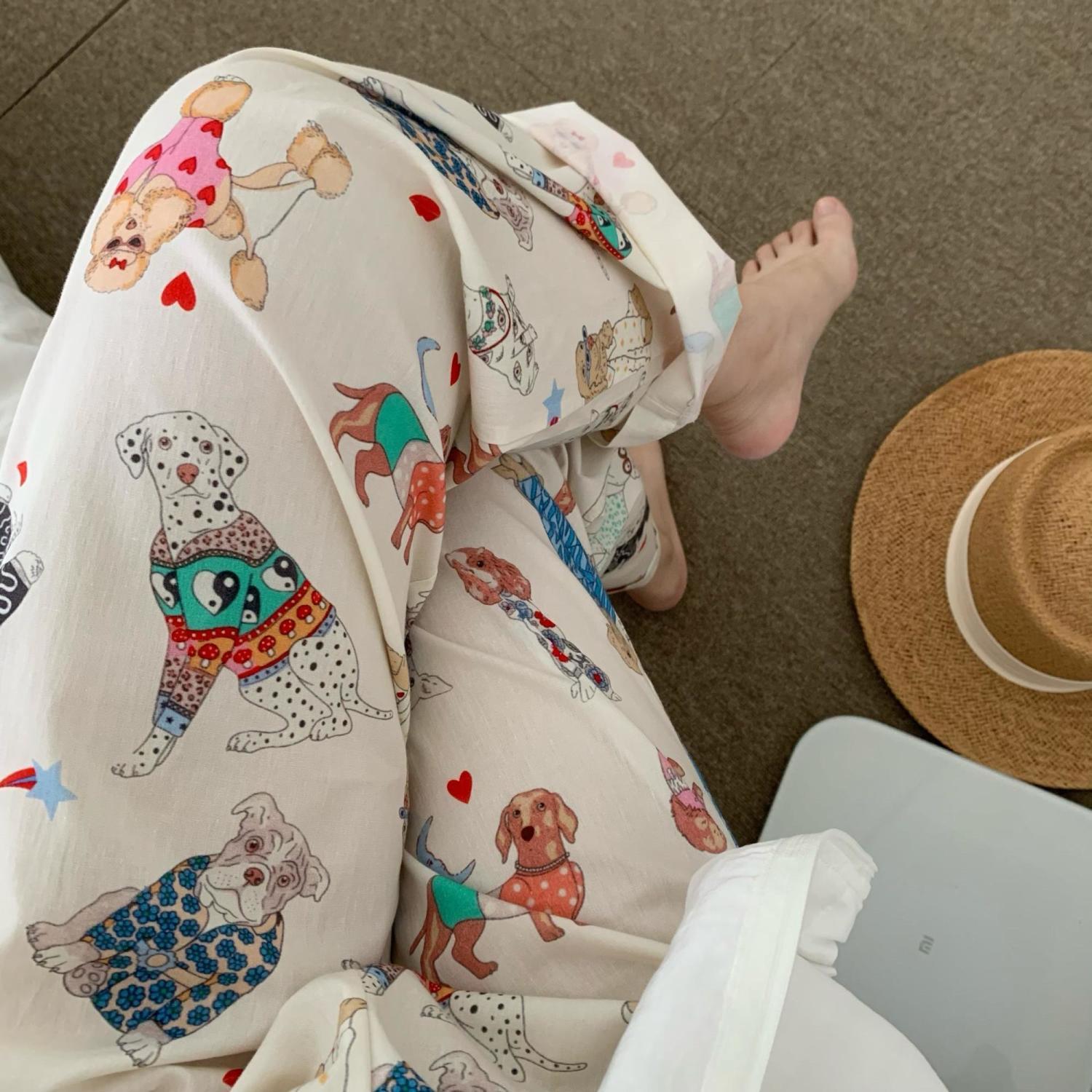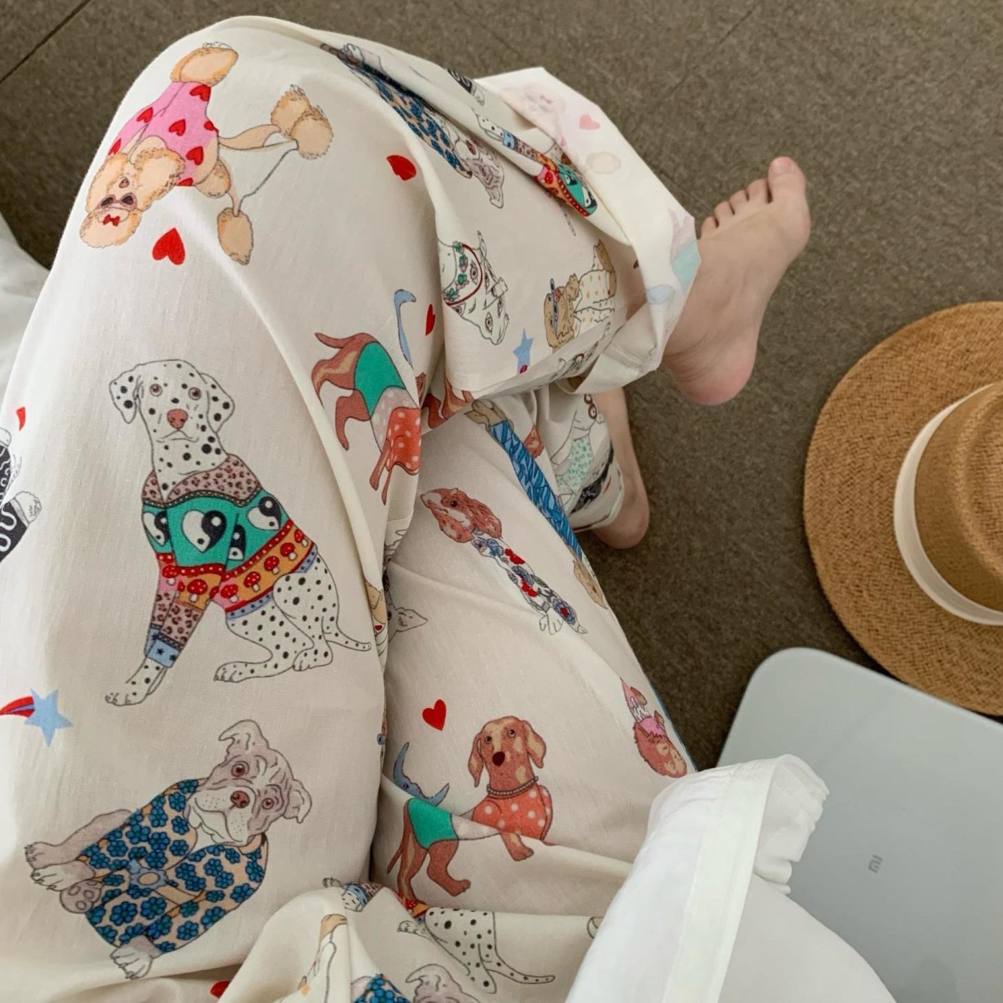 散歩して曲がったズボンの漫画の犬の春秋insの韓国版の寝ているズボンの女性のゆったりしているレジャーの夏の家のレジャーのズボンは外に着ることができます。
