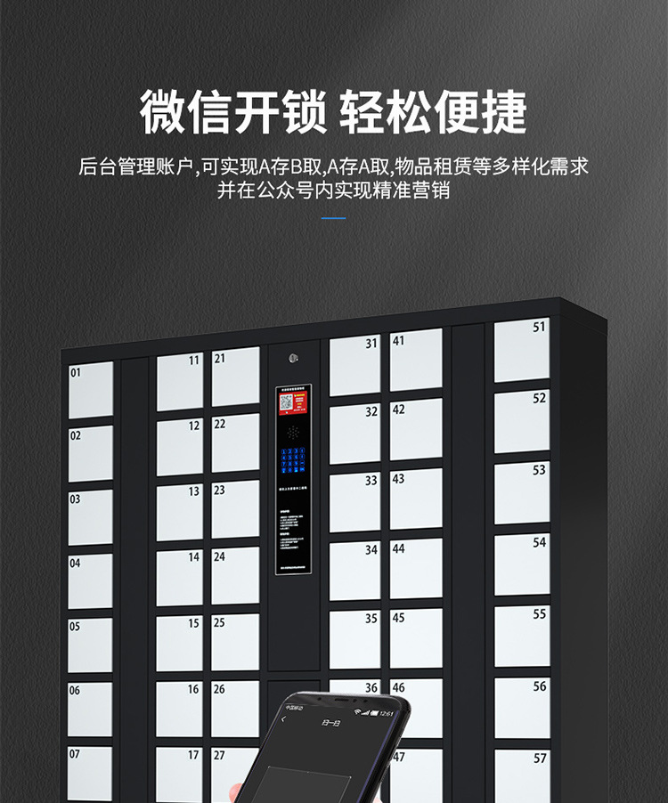 スマートフォン収納棚スーパー電子収納棚顔識別カードスキャン指紋従業員郵送保存棚