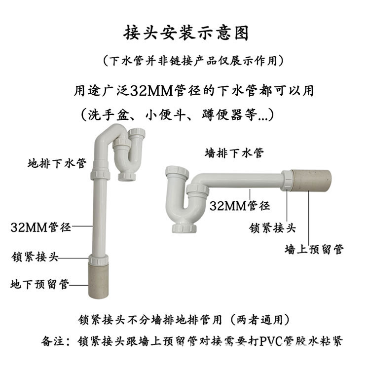 壁の洗面器の32mmの管径の排水管は壁に入れて接続をロックします。