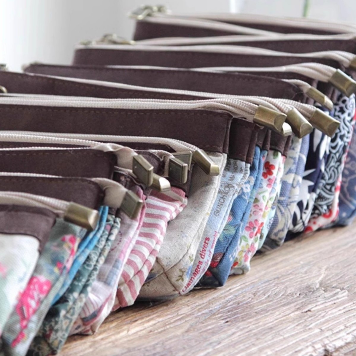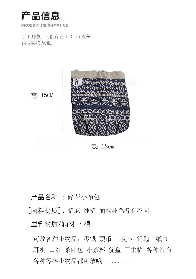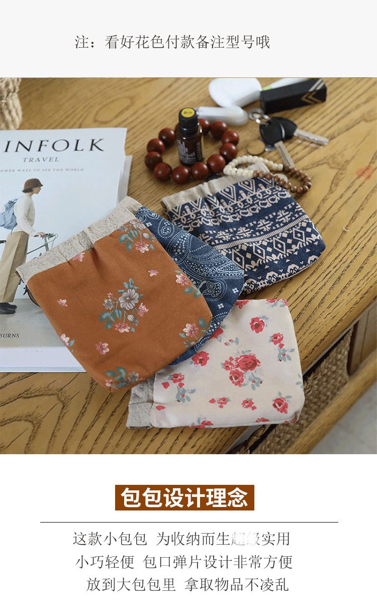 文学綿とリネンの収納花柄小さな布バッグ変更キーポータブルミニ雑貨口紅ヘッドフォン分類カードバッグ