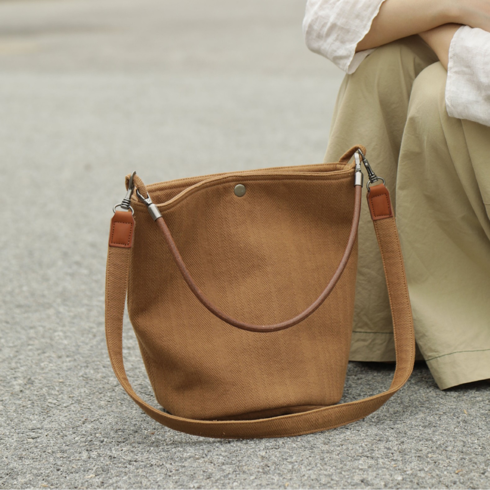 布包原创水桶包经典 麻棉设计师小众品牌软而不塌单肩斜挎包