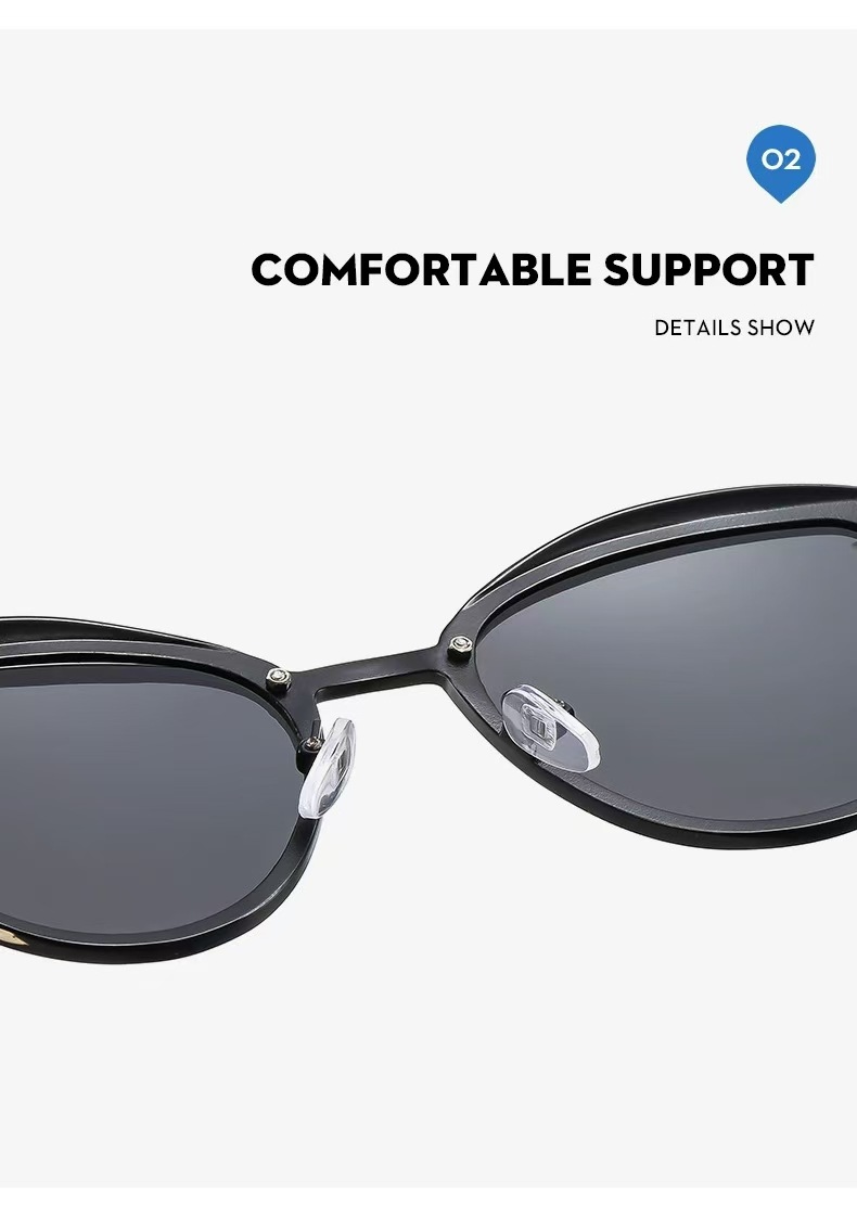 新しいクロスボーダー偏光サングラス、ヨーロッパとアメリカのファッショナブルなレディースレトロキャットアイ、紫外線防止、カラフルで高級感のあるサングラス