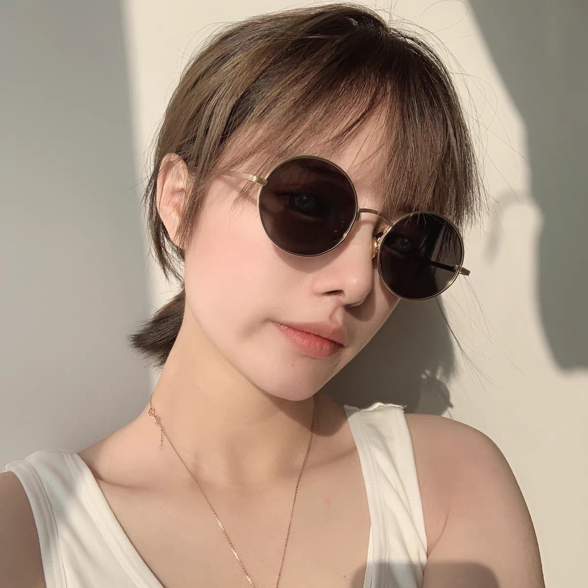 新型の軽豪華な古いお金の風のサングラスの復古のファッションの金属の小さい丸い枠の板材の女性の高級感の偏光のサングラス