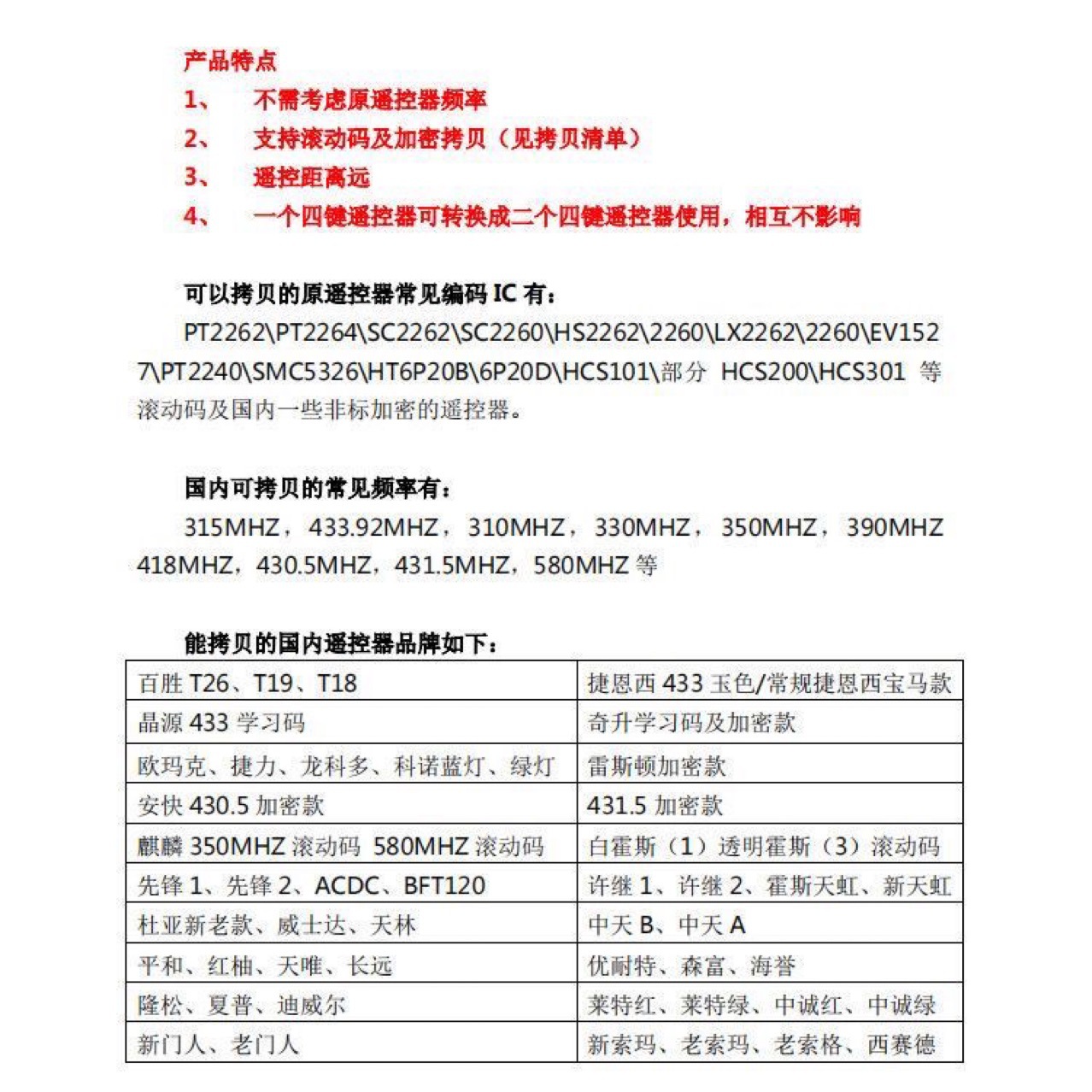 電動シャッターシャッターリモコン車庫ドア伸縮道ゲート315/433超強対コピーキー