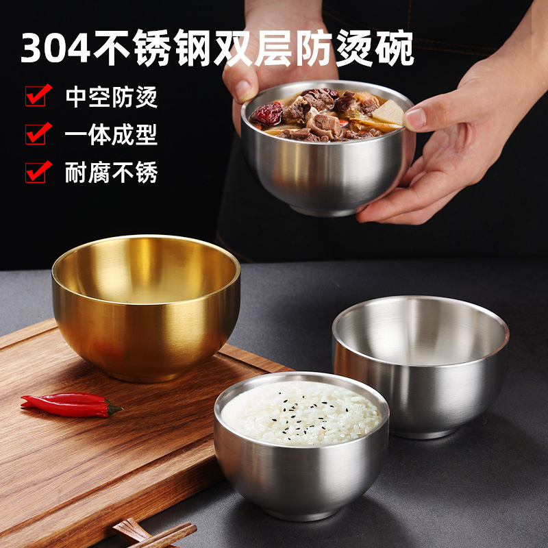 工場直売韓国式304ステンレスご飯碗金色家庭用二重熱防止スープ碗子供用食事碗