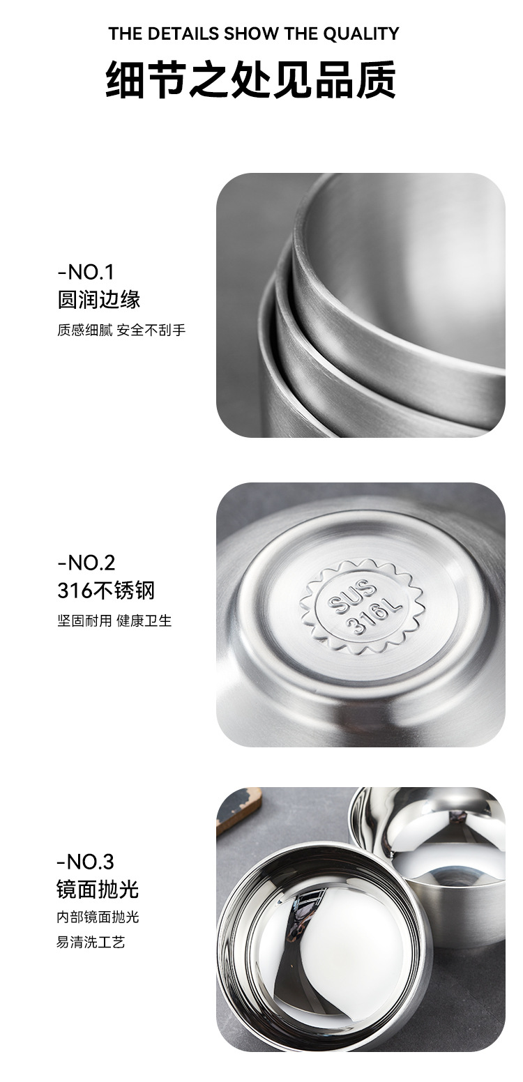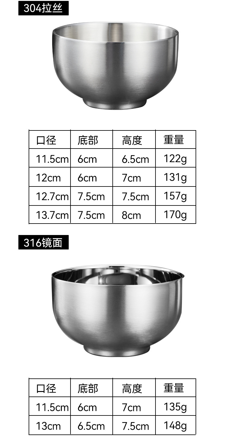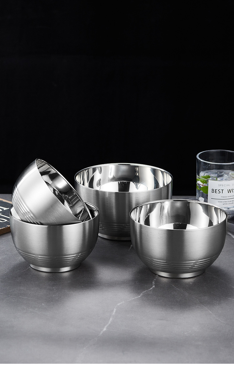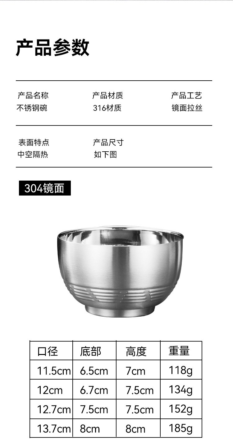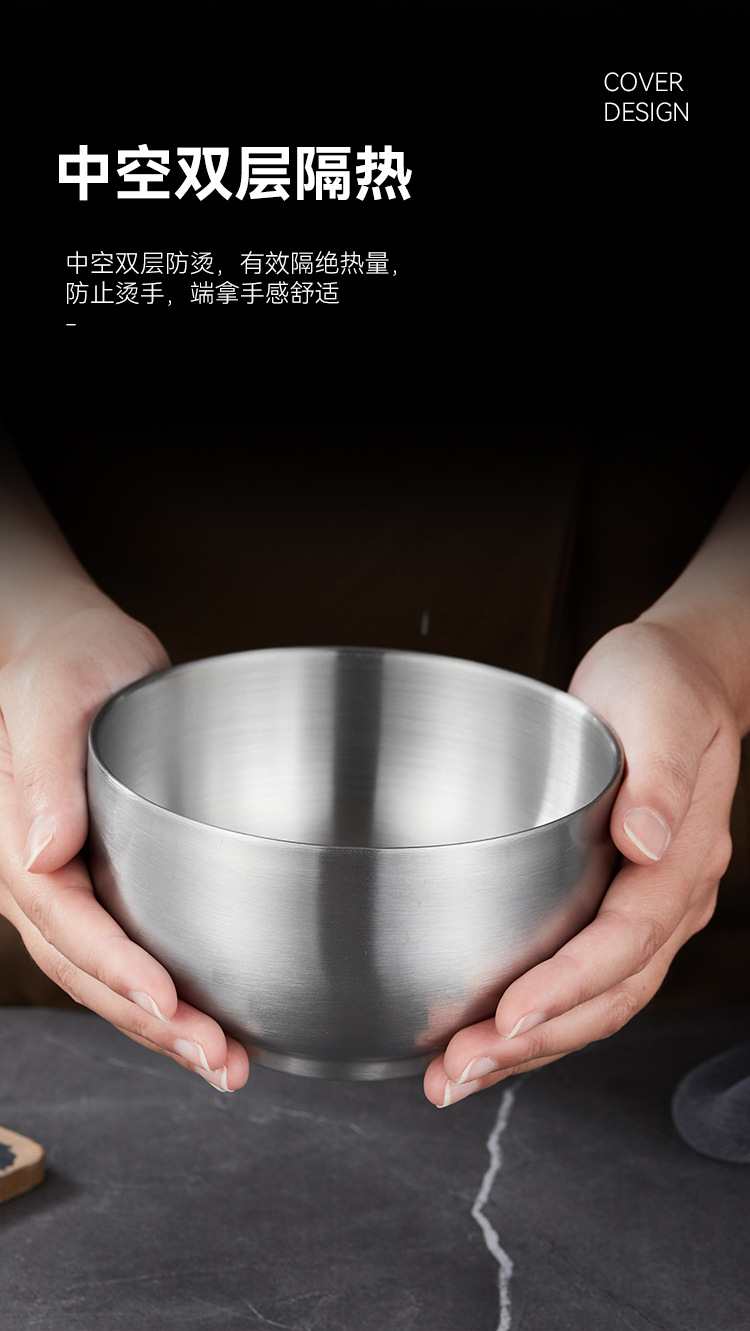 316食品級ステンレスボウル家庭用児童成人二重断熱茶碗セット304スープボウル転倒防止熱
