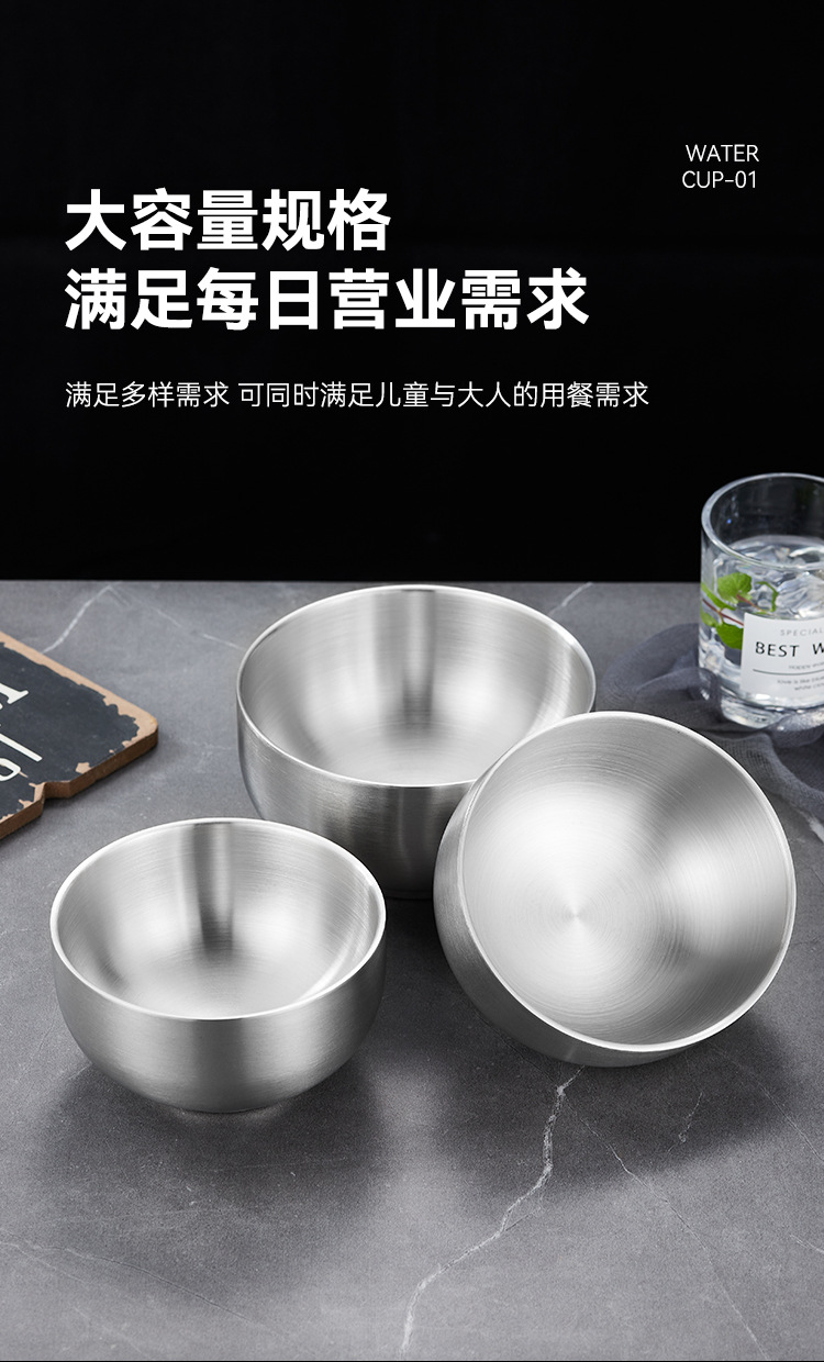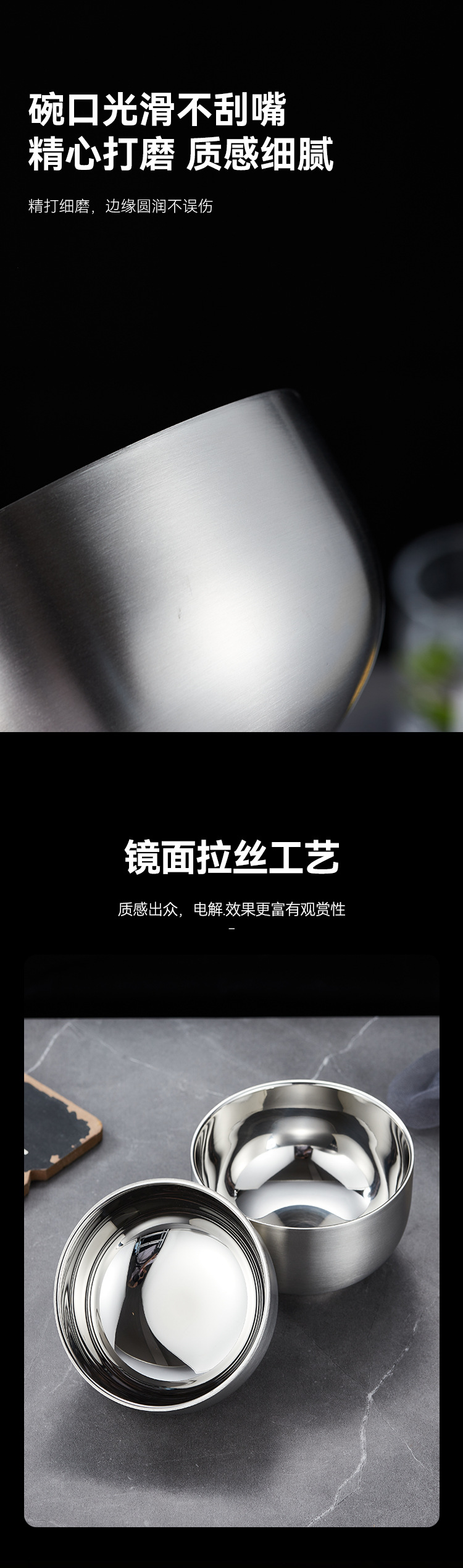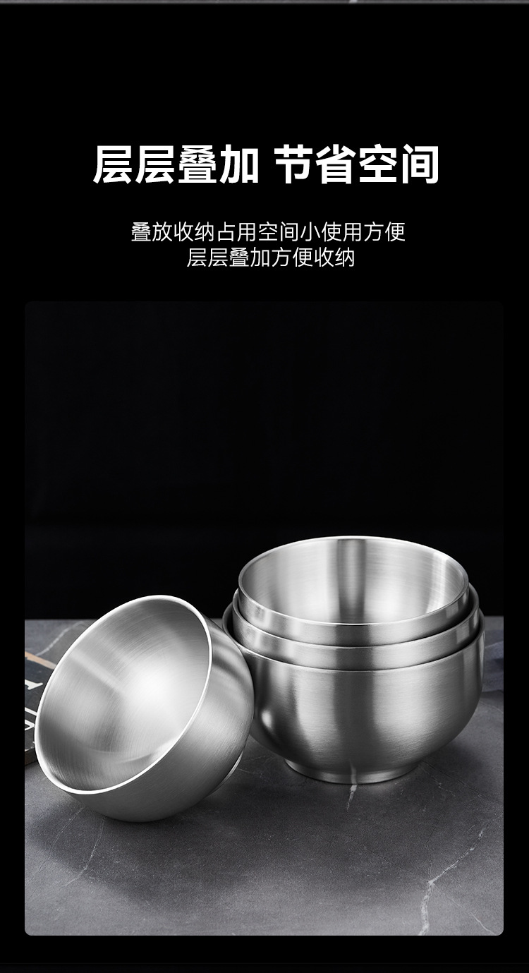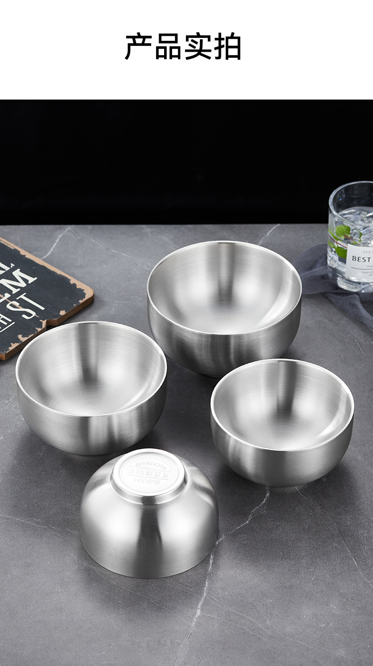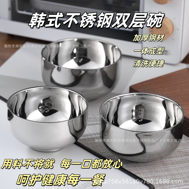韩式不锈钢食品级儿童碗家用双层防烫防摔加厚米饭汤碗沙拉调料碗