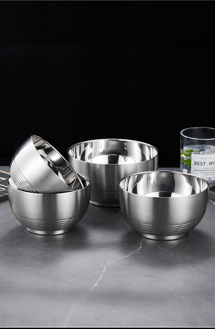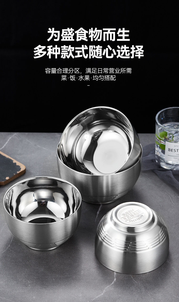 304食品級ステンレス二重ボウル転倒防止断熱防止食事ボウルスープボウル家庭用学校食器