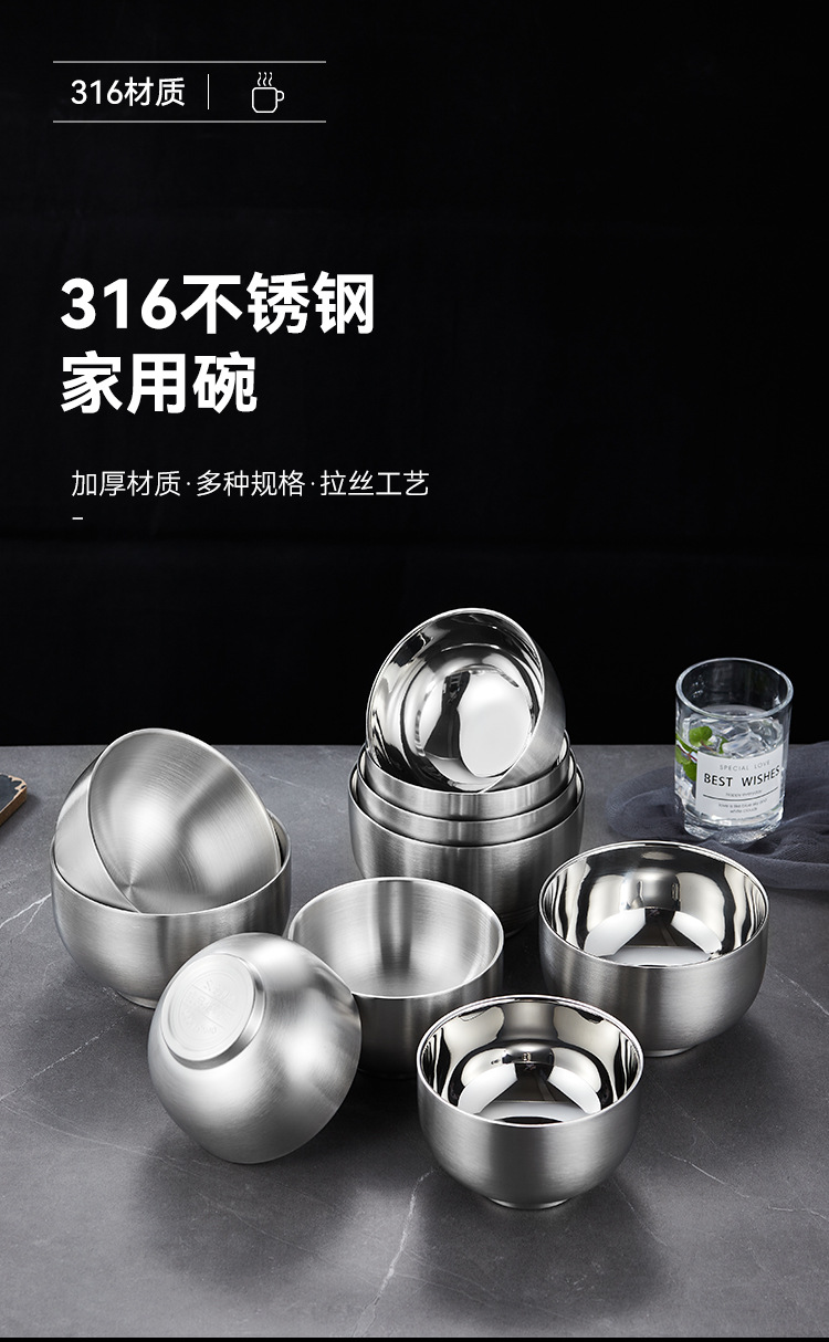工場直売316Lステンレス家庭用飯碗個人専用麺スープ碗泡碗大容量断熱防止パーマ