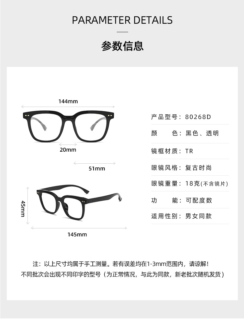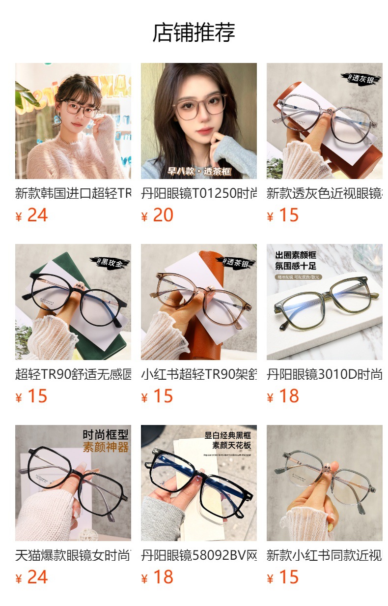 黒枠眼鏡ブルーレイ防止tr90鏡枠すっぴん鏡女8019丹陽眼鏡近視男卸売りネット赤鏡架