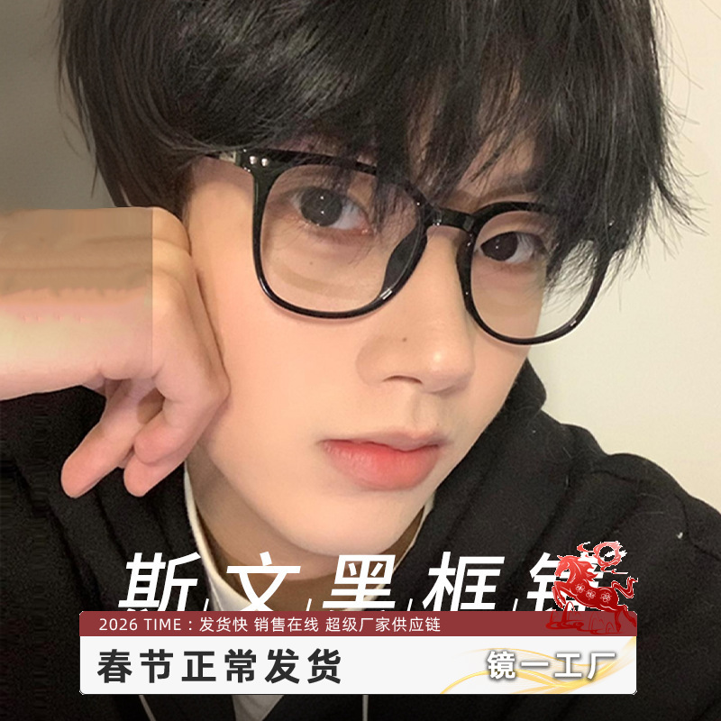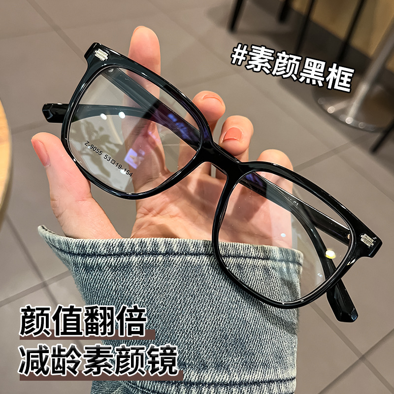 新早八すっぴん高級感黒枠近視メガネ女性可度数大枠丸顔メガネフレームZ9055BL