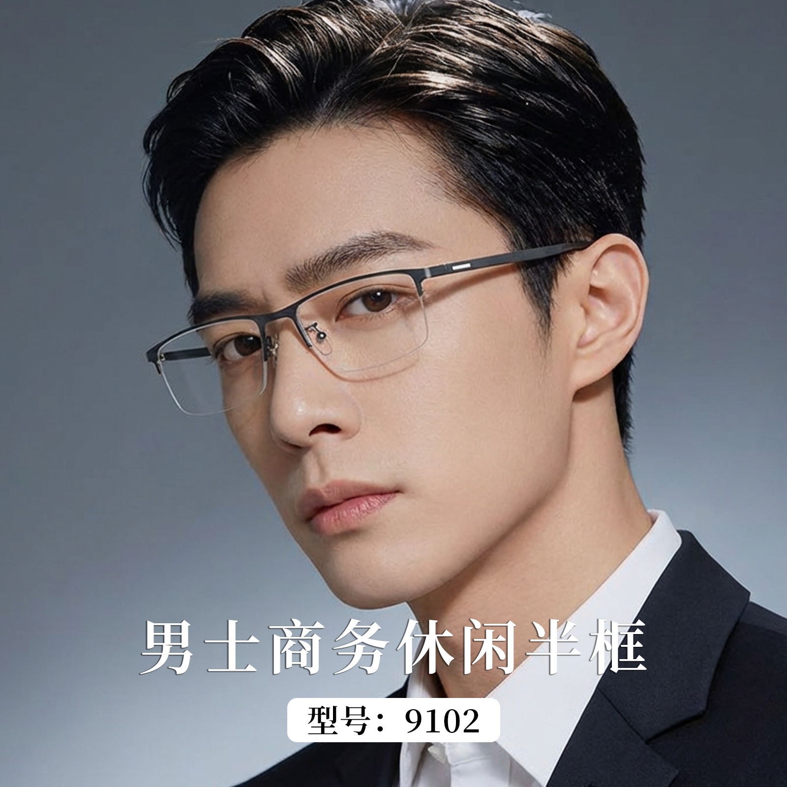 9102超軽量金属合金眼鏡フレーム男性ビジネス半フレーム眼鏡フレーム近視眼鏡光学フレーム
