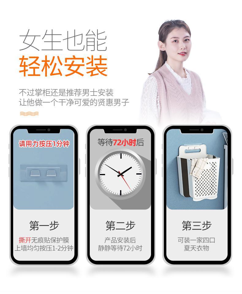 家庭用折り畳み可能な洗濯かごのトイレは穴を開けないで壁にかけることができます。