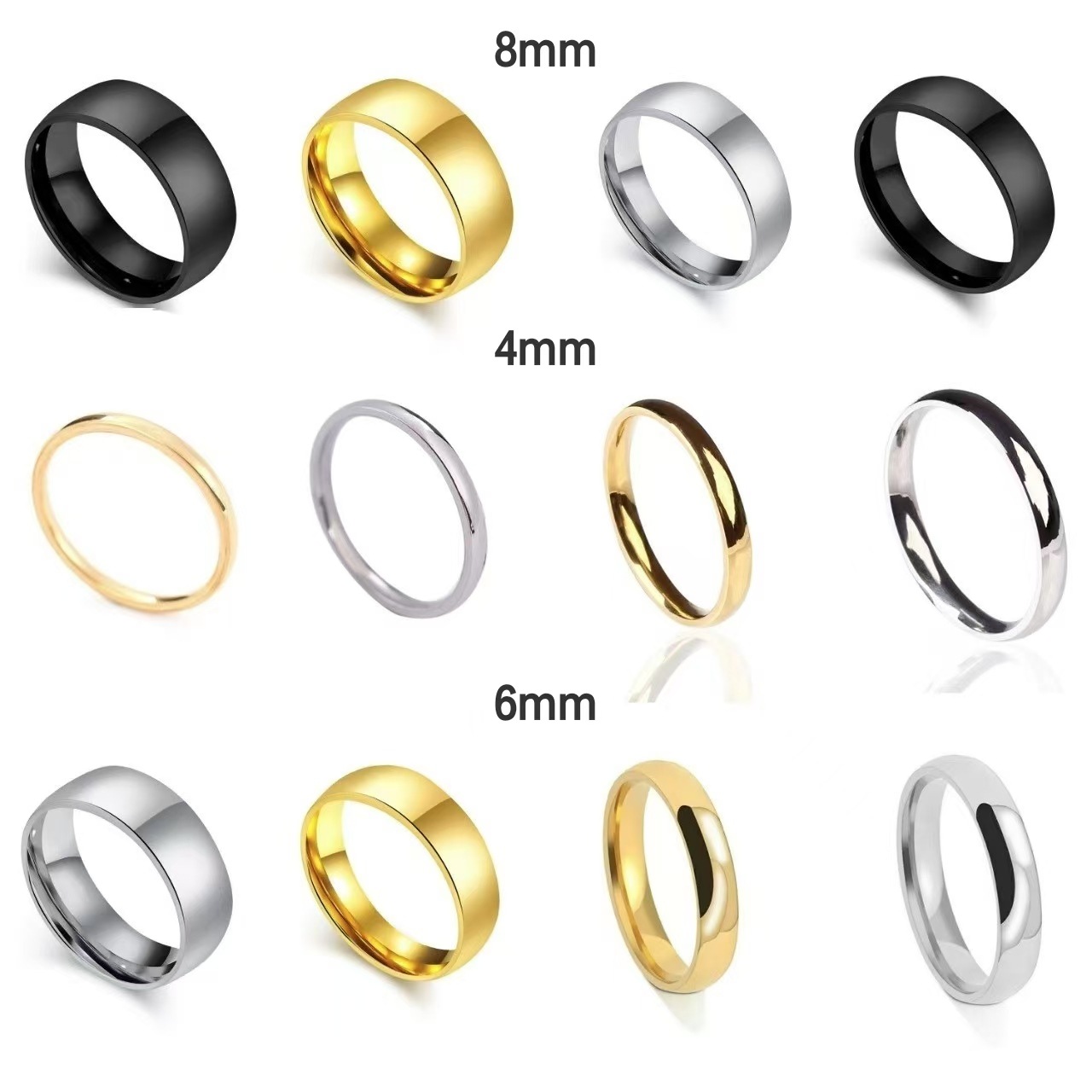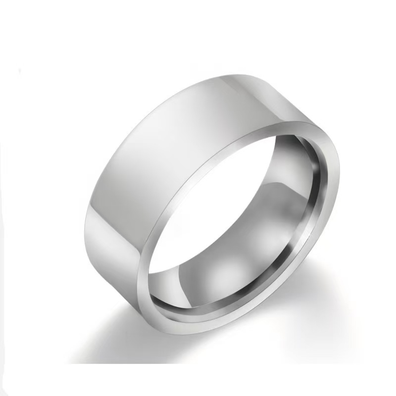 欧米のファッションはシンプルな素輪チタン鋼の光沢面の装飾品で、8mmの大衆は色を落とさないで軽くて豪華な平面のカップルの指輪です。
