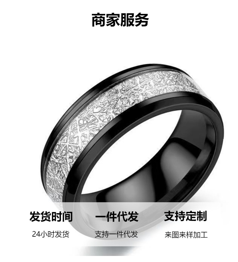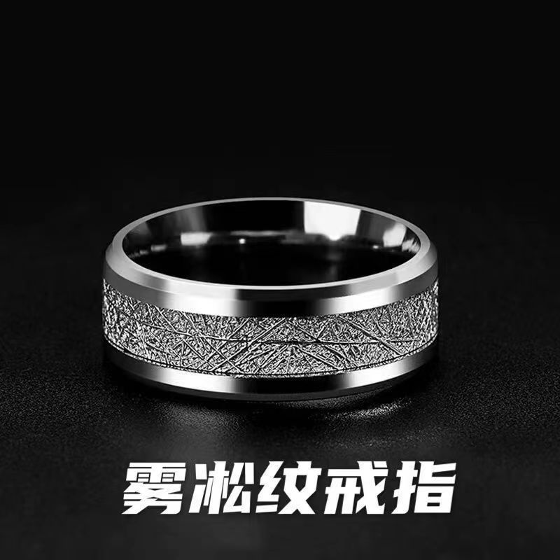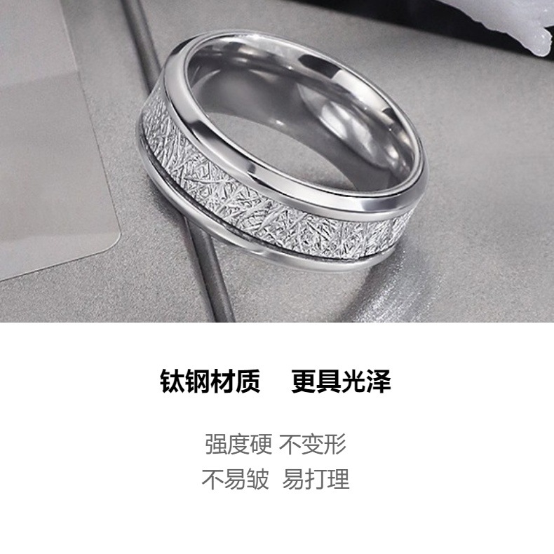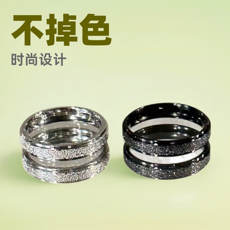 国境を越えた欧米ファッション6mmダブル階段真珠砂チタン鋼カップル指輪女性は色が落ちない高級感のあるアクセサリー.