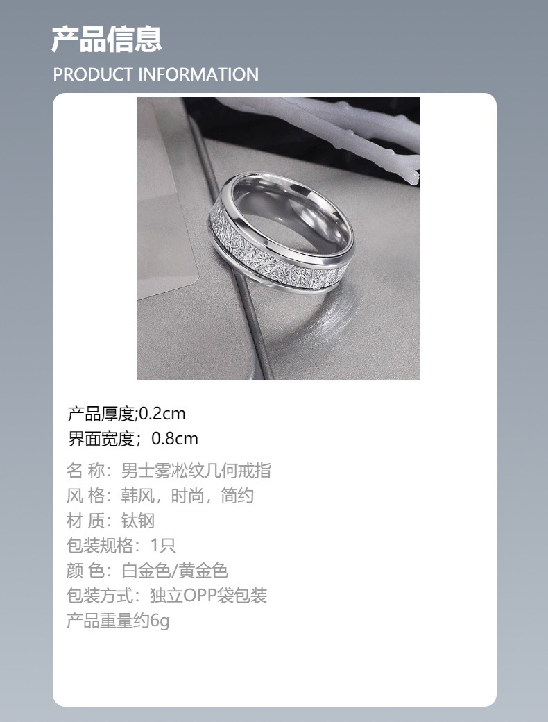 越境カップル向けステンレス製リング、軽奢で高級感のある電気メッキ、色褪せない、ファッショナブルな幾何学模様の丸型ペアリング、卸売