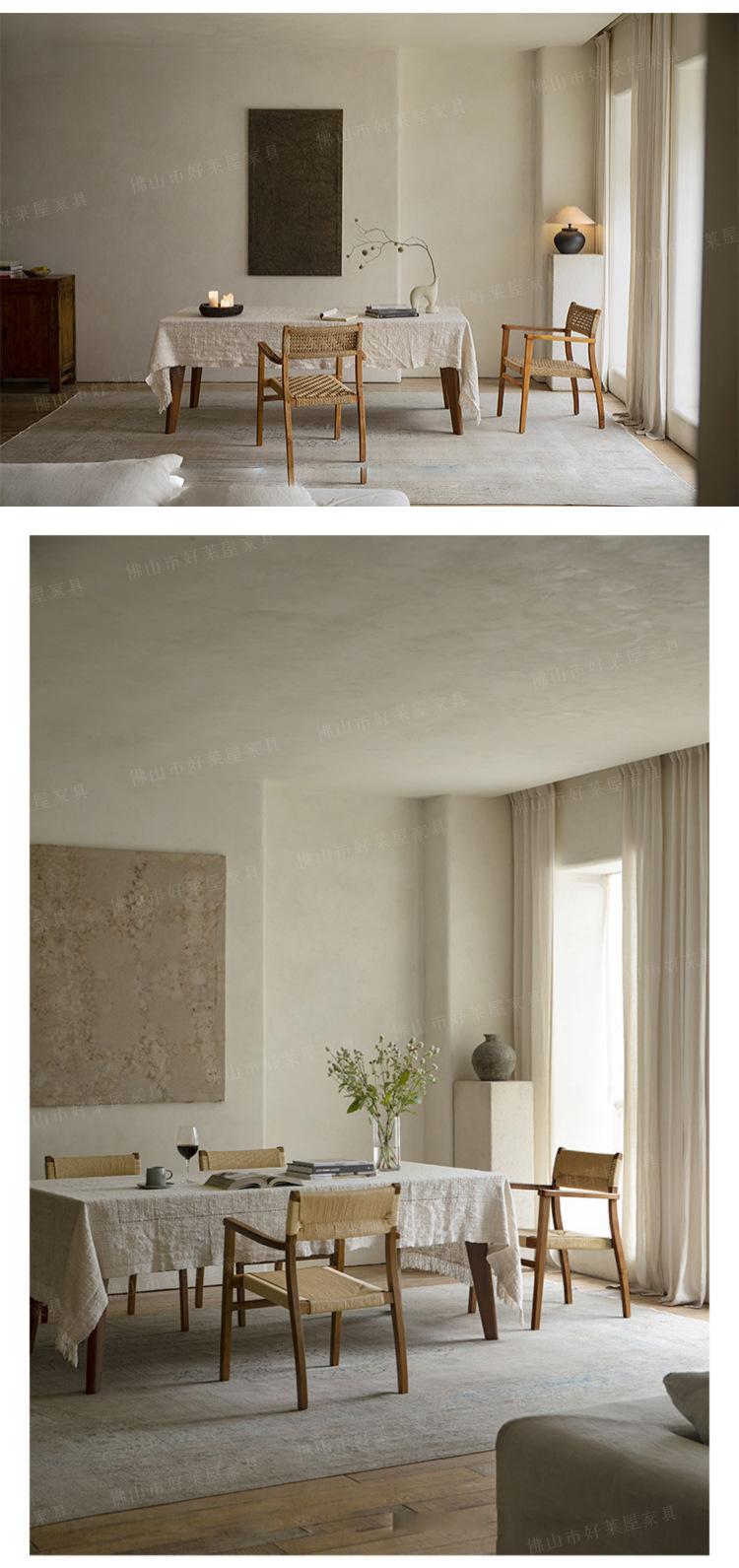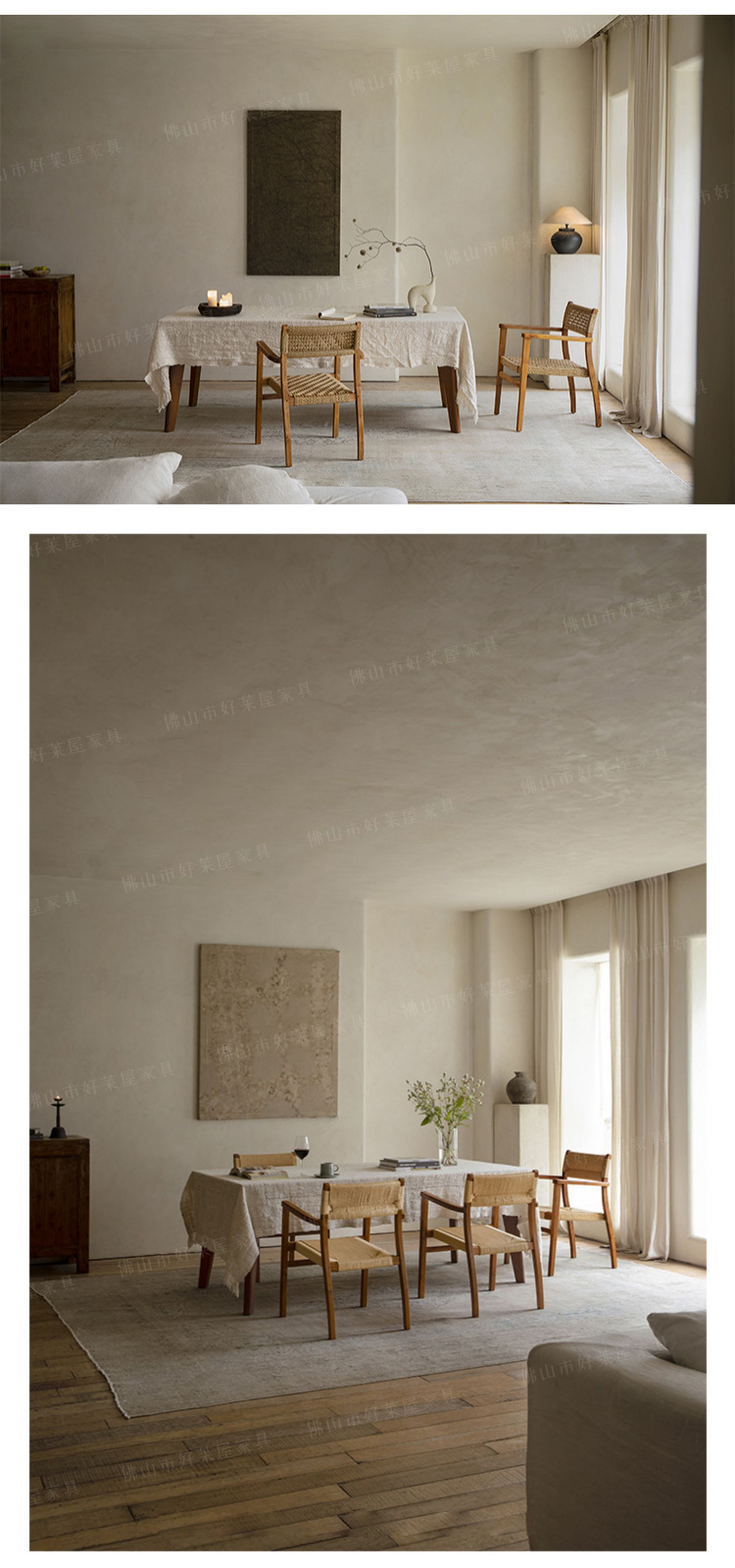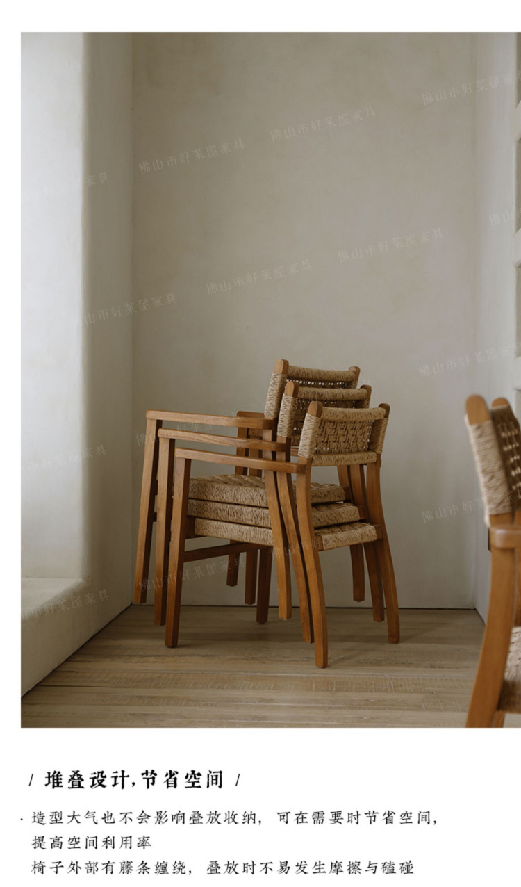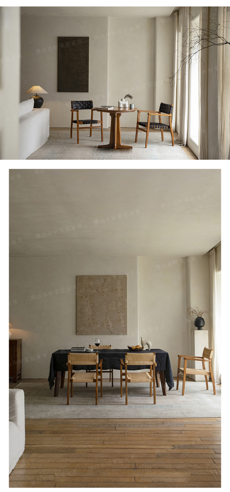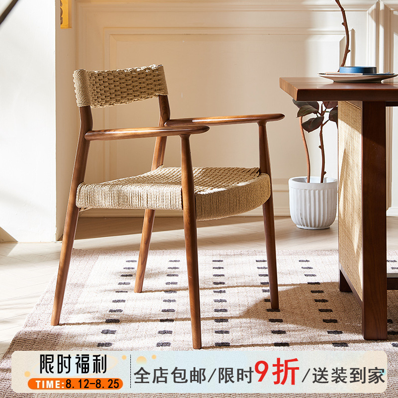 わびさびスタイル無垢材ダイニングチェアホームアンティークスタイルレストランロープ編みアームレストチェアホテルカフェダイニングテーブルチェア