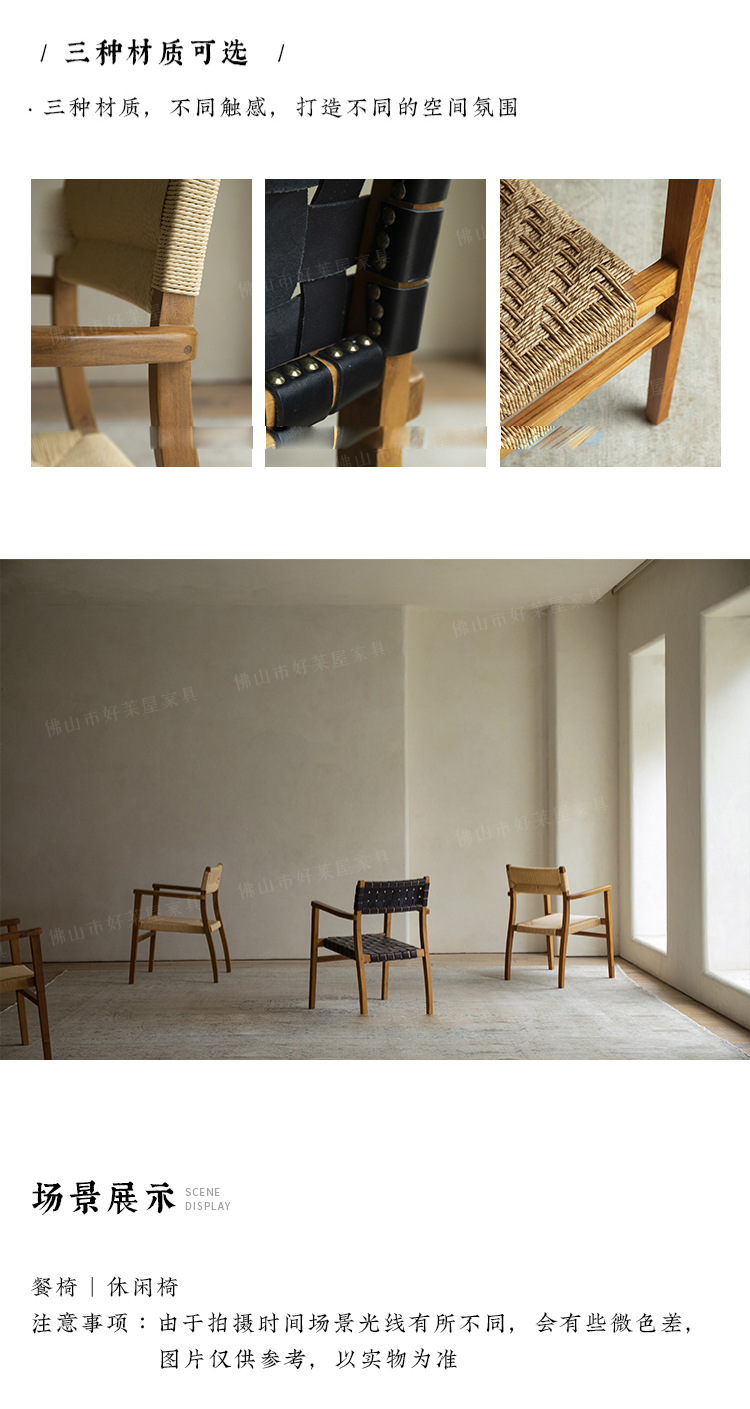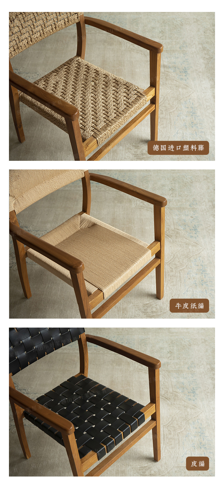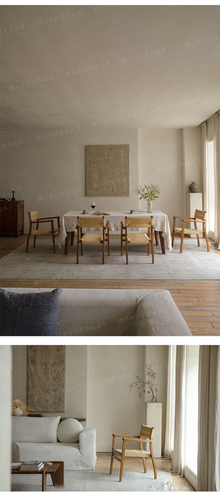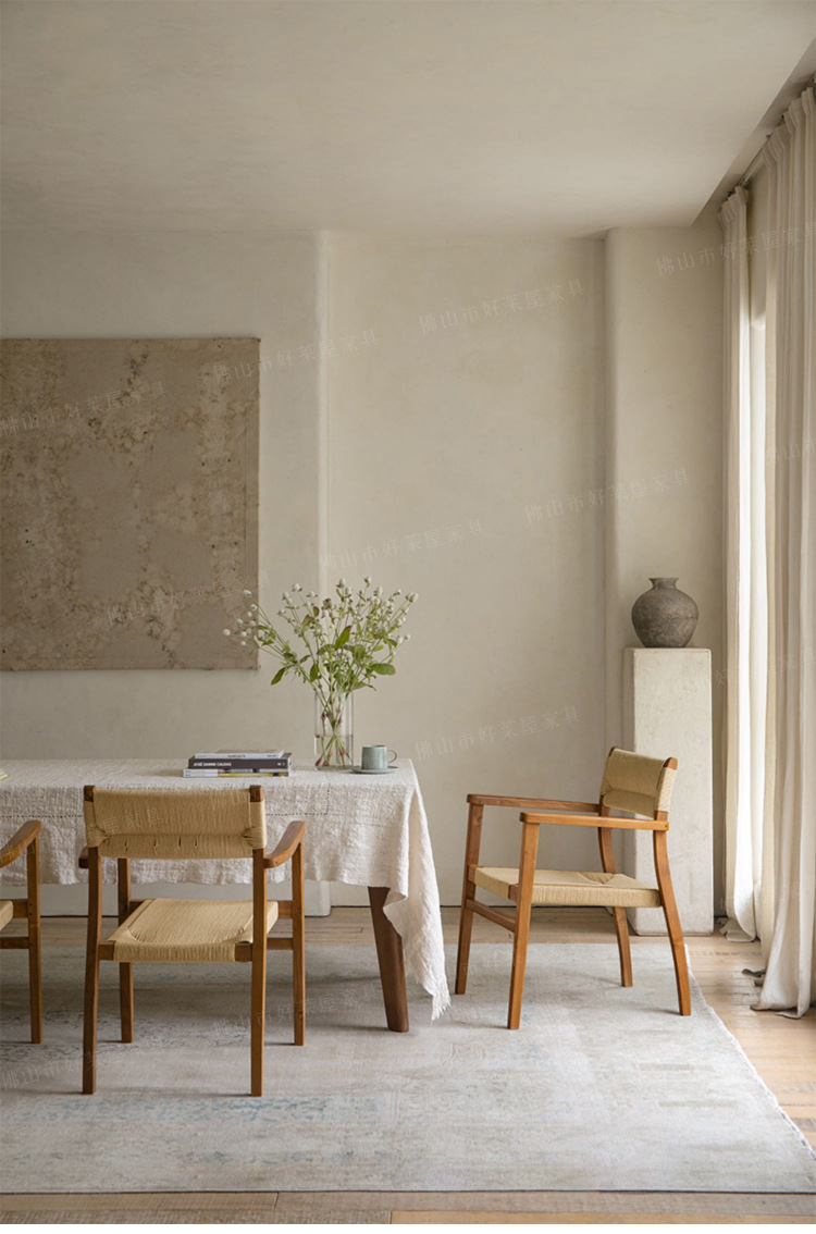 わびさびスタイル無垢材ダイニングチェアホームアンティークスタイルレストランロープ編みアームレストチェアホテルカフェダイニングテーブルチェア