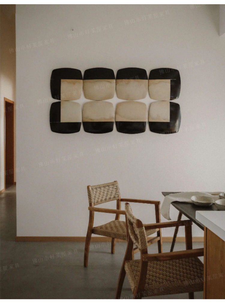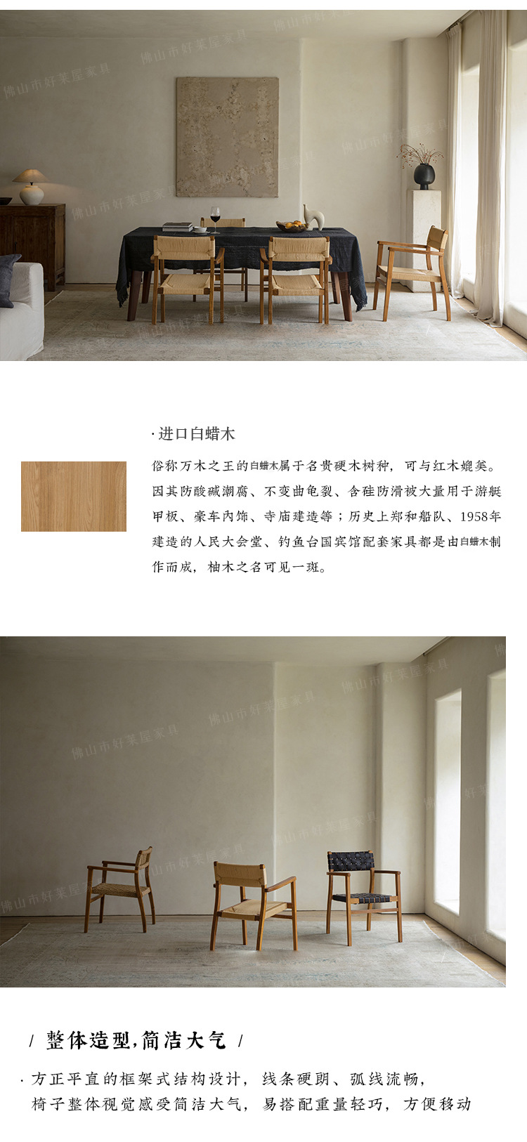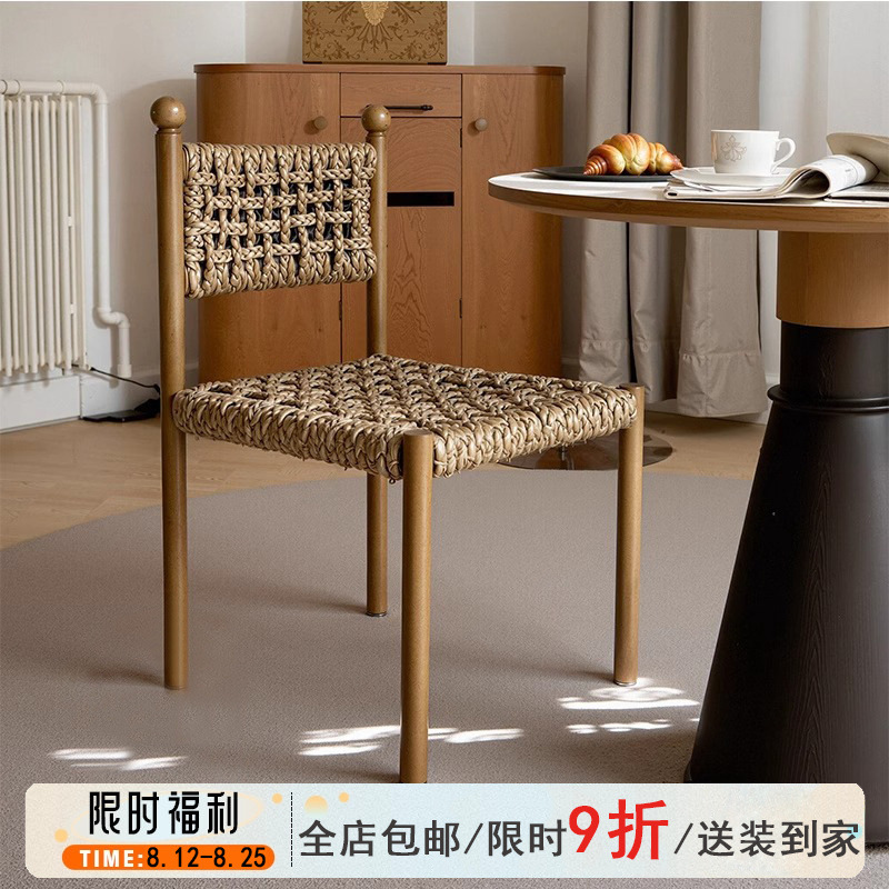 中古风绳编实木餐椅复古风家用餐厅酒店靠背椅民宿白蜡木草绳椅子