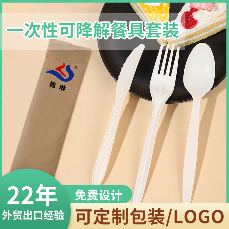 分解性使い捨てナイフフォークスプーン環境保護食器トウモロコシ澱粉テイクアウト梱包ピザティッシュクラフト紙カスタマイズ